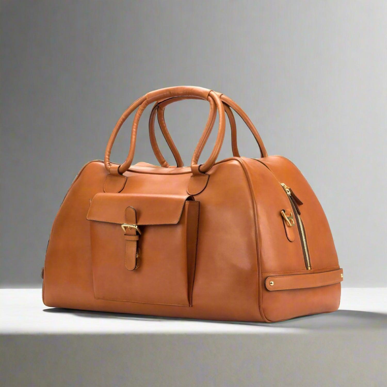 - Ambrogio 2807 Men's Bag Cognac Calf-Skin Leather Travel Duffle Bag (AMBH1019)