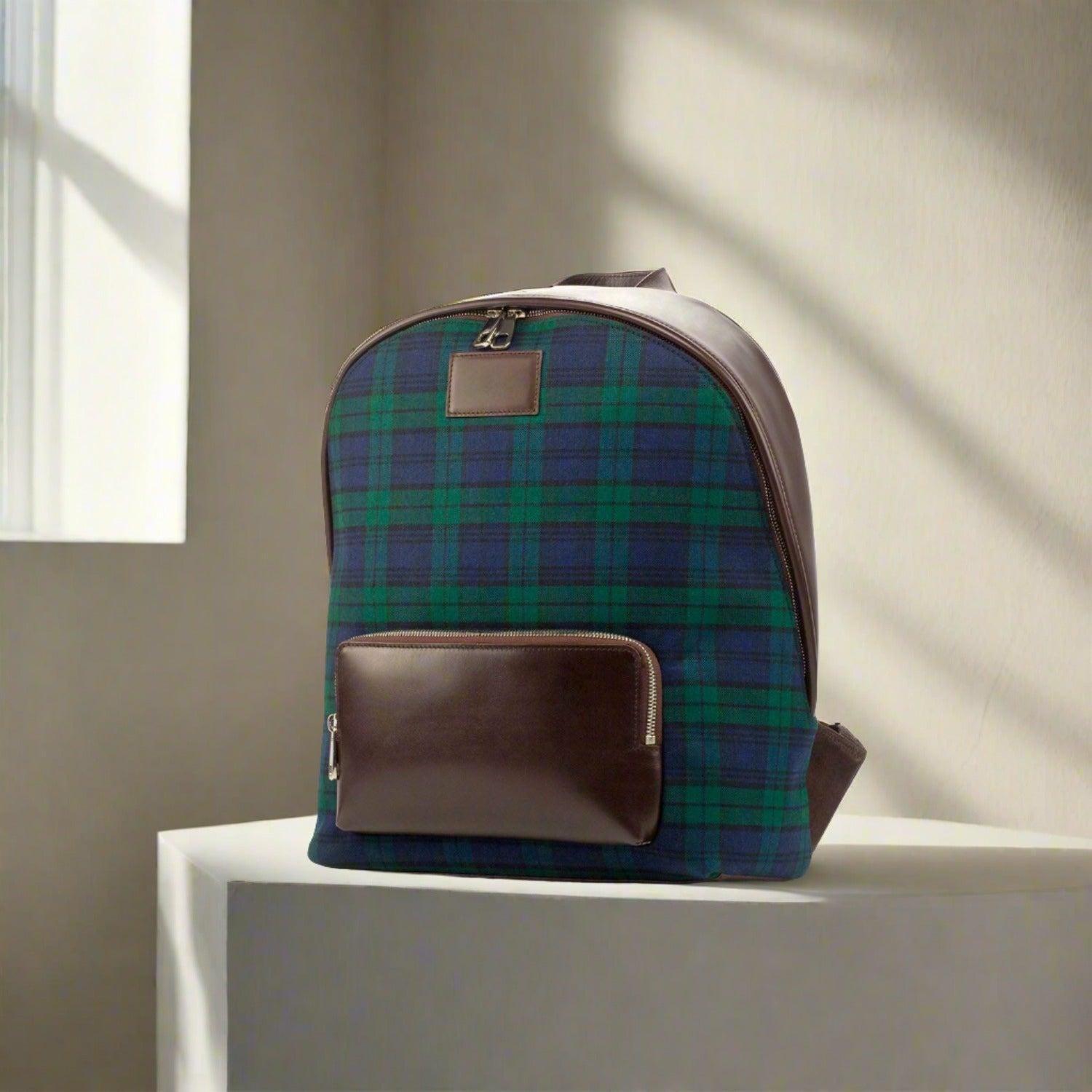 - Ambrogio 4310 Men's Bag Green, Blue, and Dark Brown Fabric / Calf-Skin Leather Back Pack(AMBH1002)