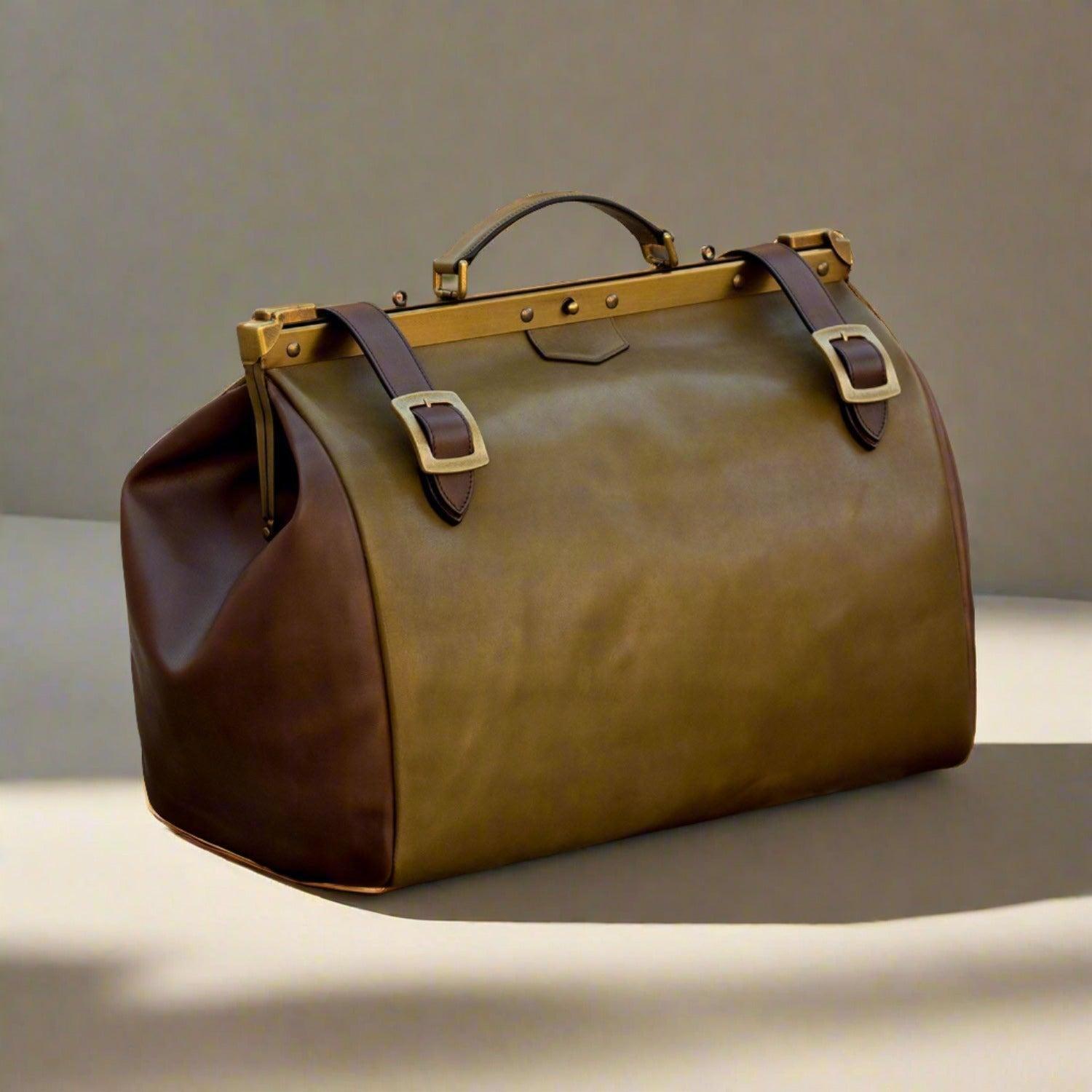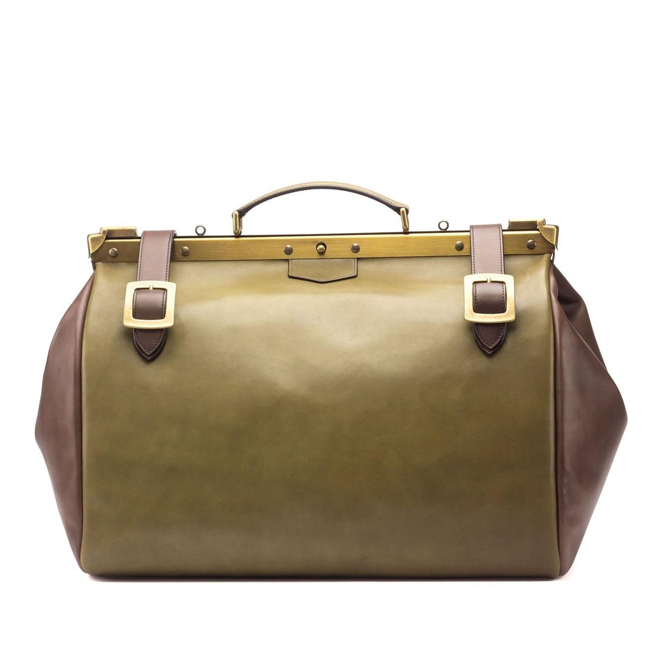 Ambrogio Men's Bag Olive & Dark Brown Calf-Skin Leather Doctor Bag (AMBH1003)