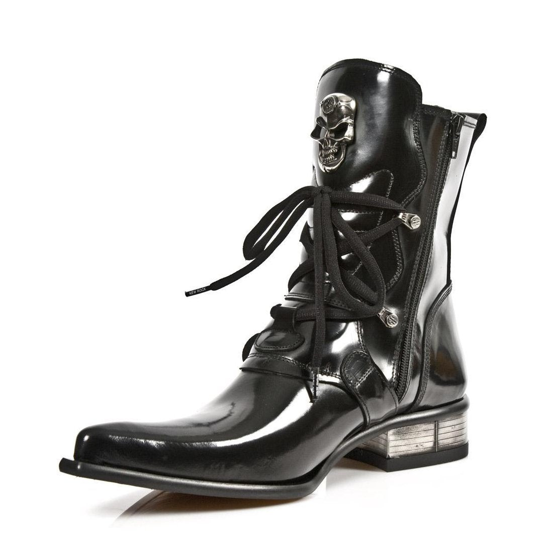 - New Rock M-2284-C10 Men's Designer Shoes Black Calf-Skin Leather Ankle Boots (NRS1271)