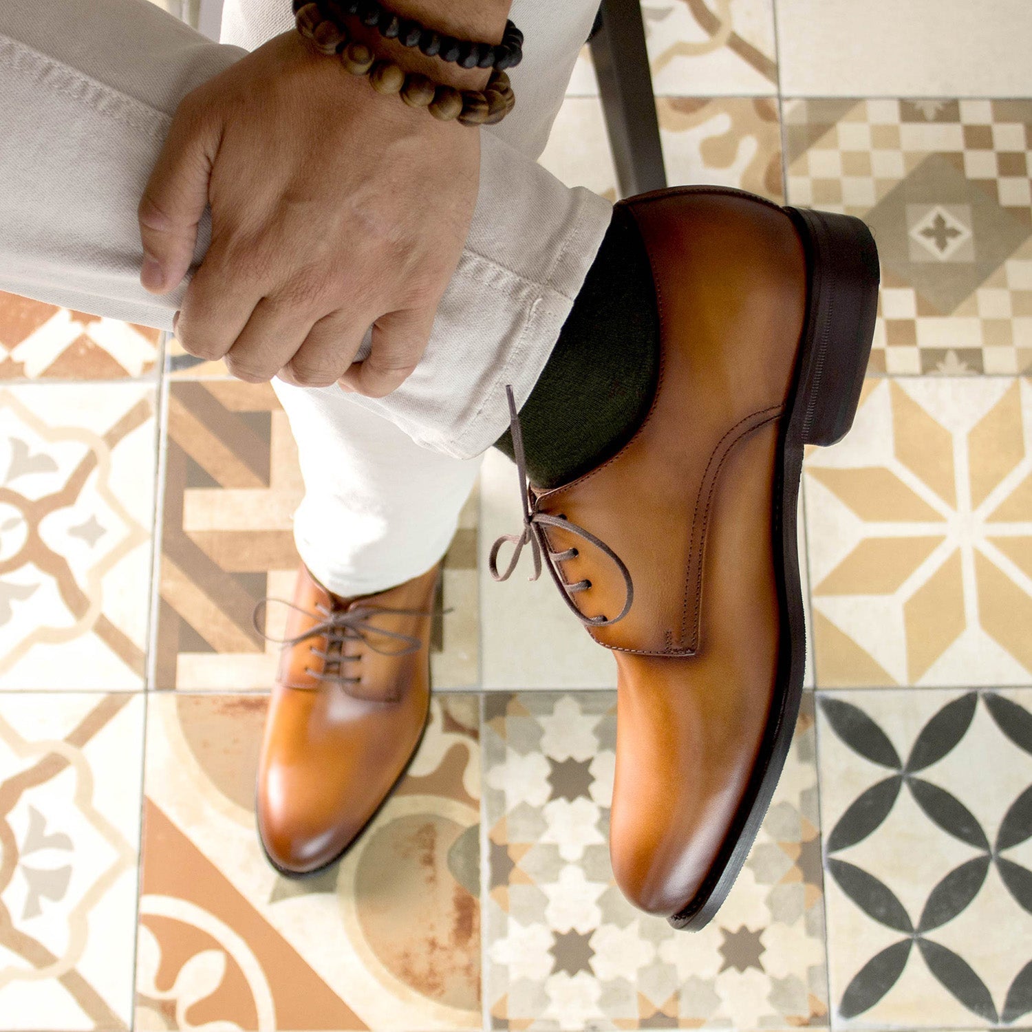 - Ambrogio Handmade Men's Shoes Cognac Calf-Skin Leather Derby s (AMB2330)