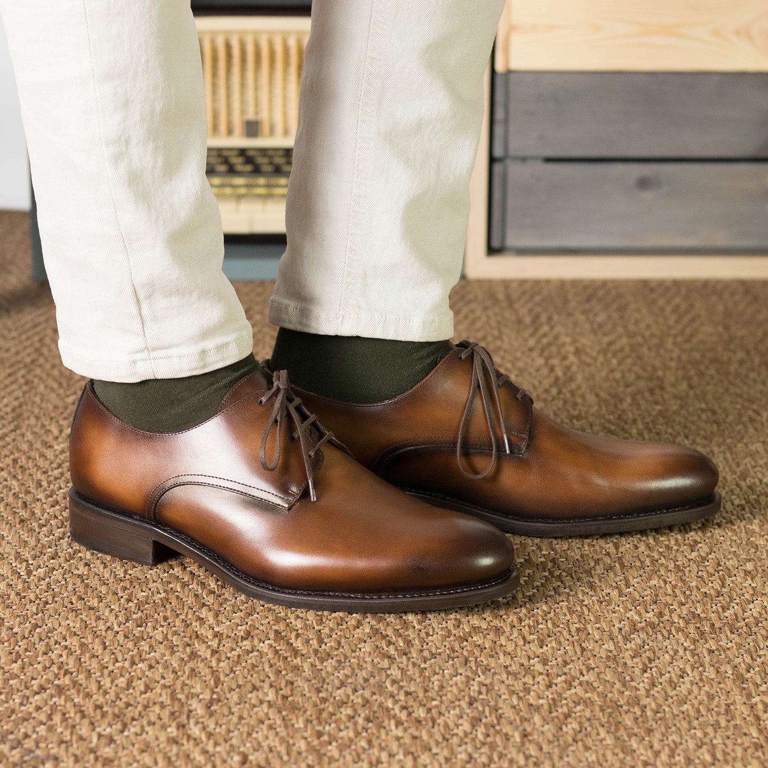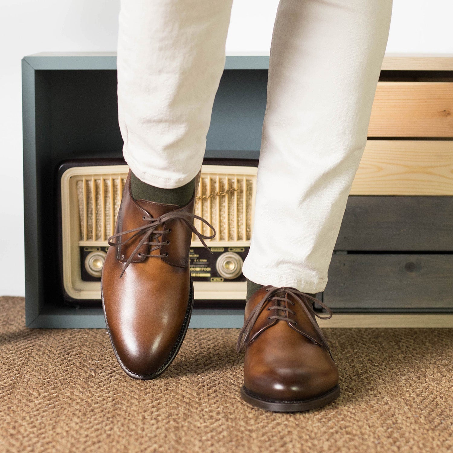 - Ambrogio Handmade Men's Shoes Cognac Calf-Skin Leather Derby s (AMB2465)