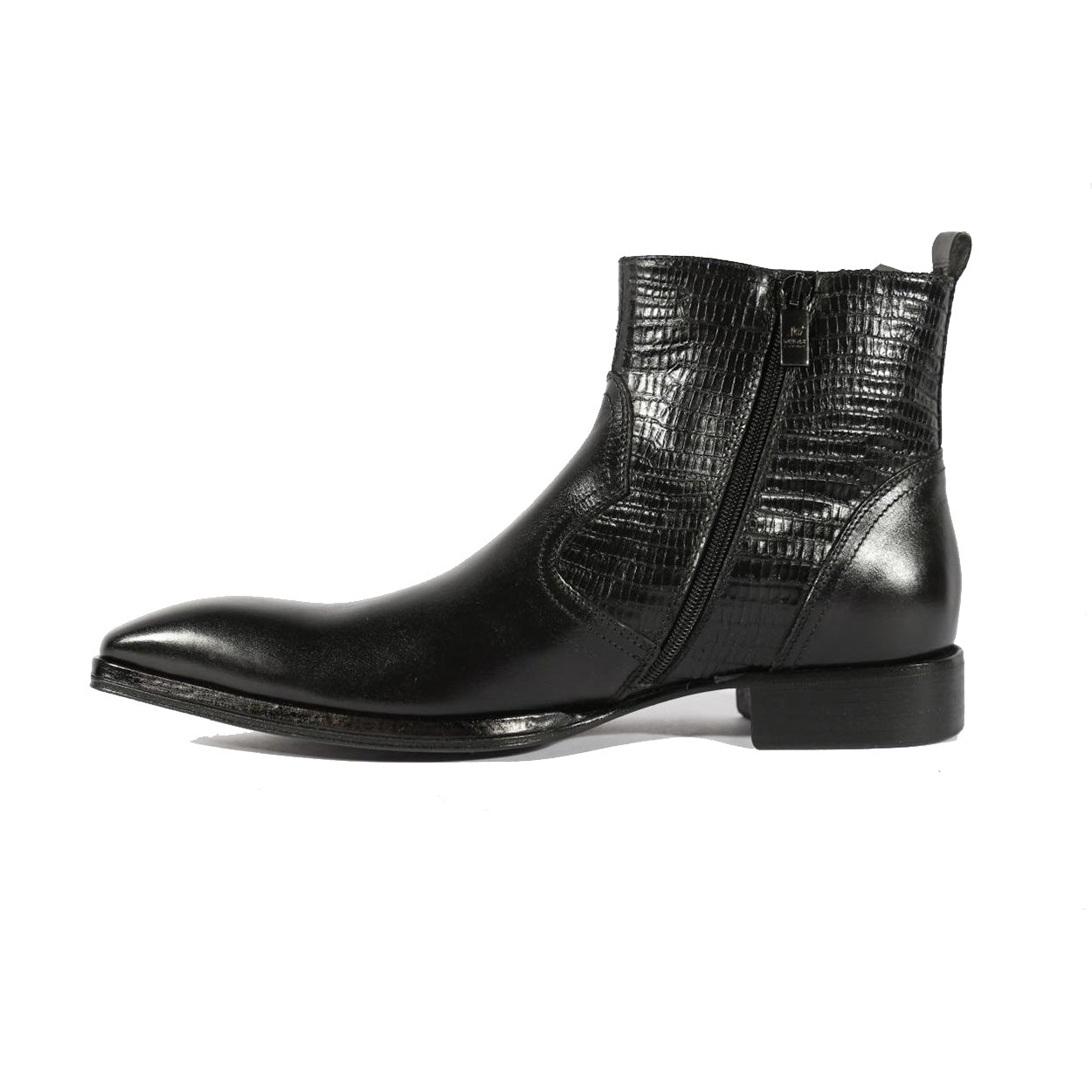 - Jo Ghost 2128 Men's Shoes Black Lizard Print / Calf-Skin Leather Ankle Boots (JG5319)