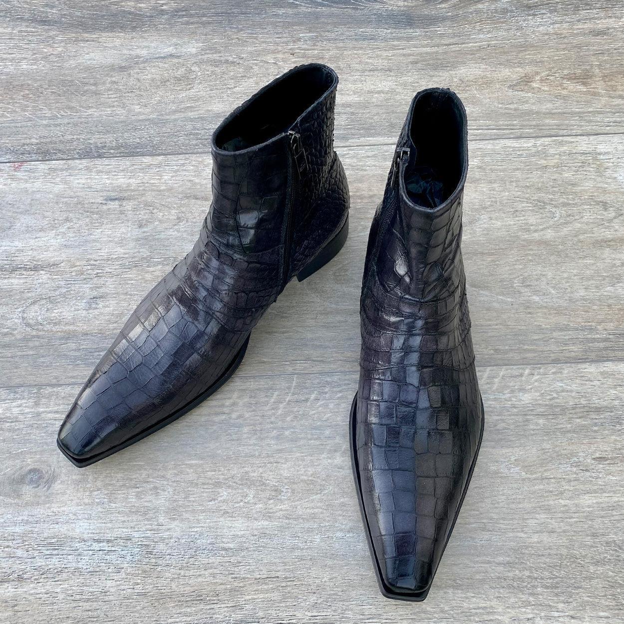 Jo Ghost 2727 BIS Men's Shoes Crocodile Print Calf-Skin Leather Ankle Boots (JG5369)