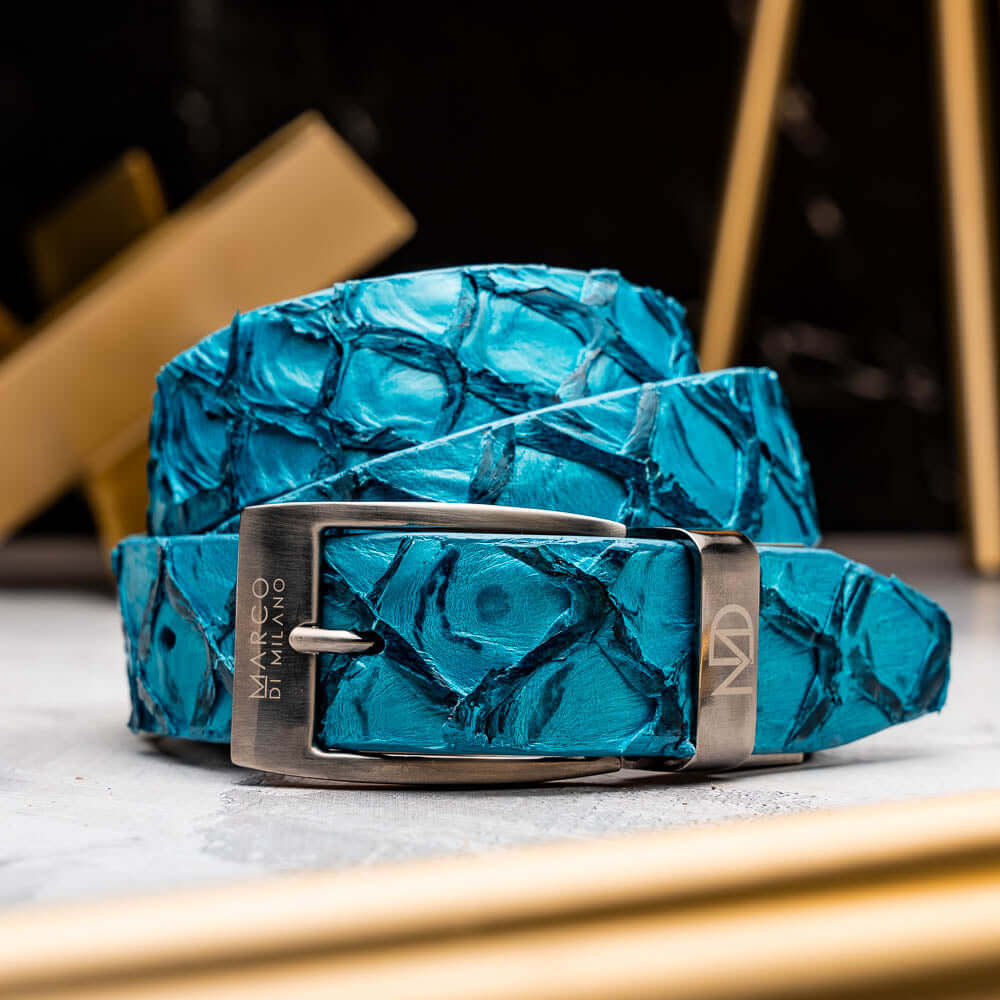 • Marco Di Milano Olivieri Men's Caribbean Blue Genuine Pirarucu Belts (MDMB1052)