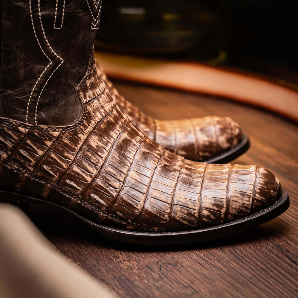 The PHOENIX boot is a refined expression of Western power and presence. Crafted with genuine caiman belly skin across the vamp and full-grain leather on the shaft, it brings a bold yet polished attitude to the cowboy silhouette. With its naturally smooth texture, subtle belly-scale pattern, and round toe finish, the PHOENIX delivers strength and sophistication in equal measure.