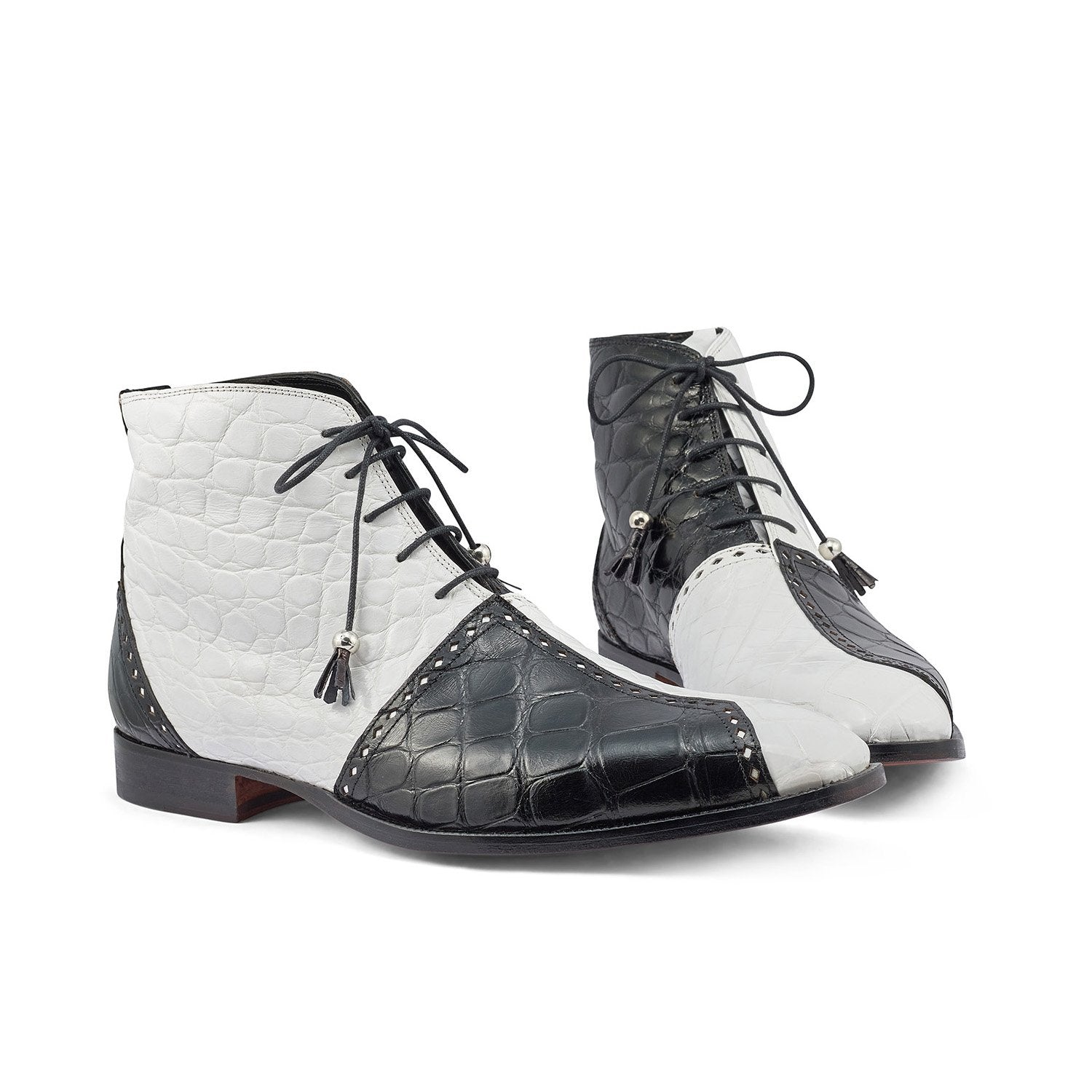 • Mauri 3095 Othello Men's Shoes Black & White Exotic Alligator Boots (MA5397)