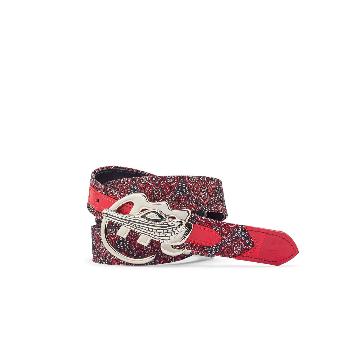 - Mauri 0100/35 Men's Black & Red Exotic Crocodile / Matahari Fabric Belt (MAB1044)