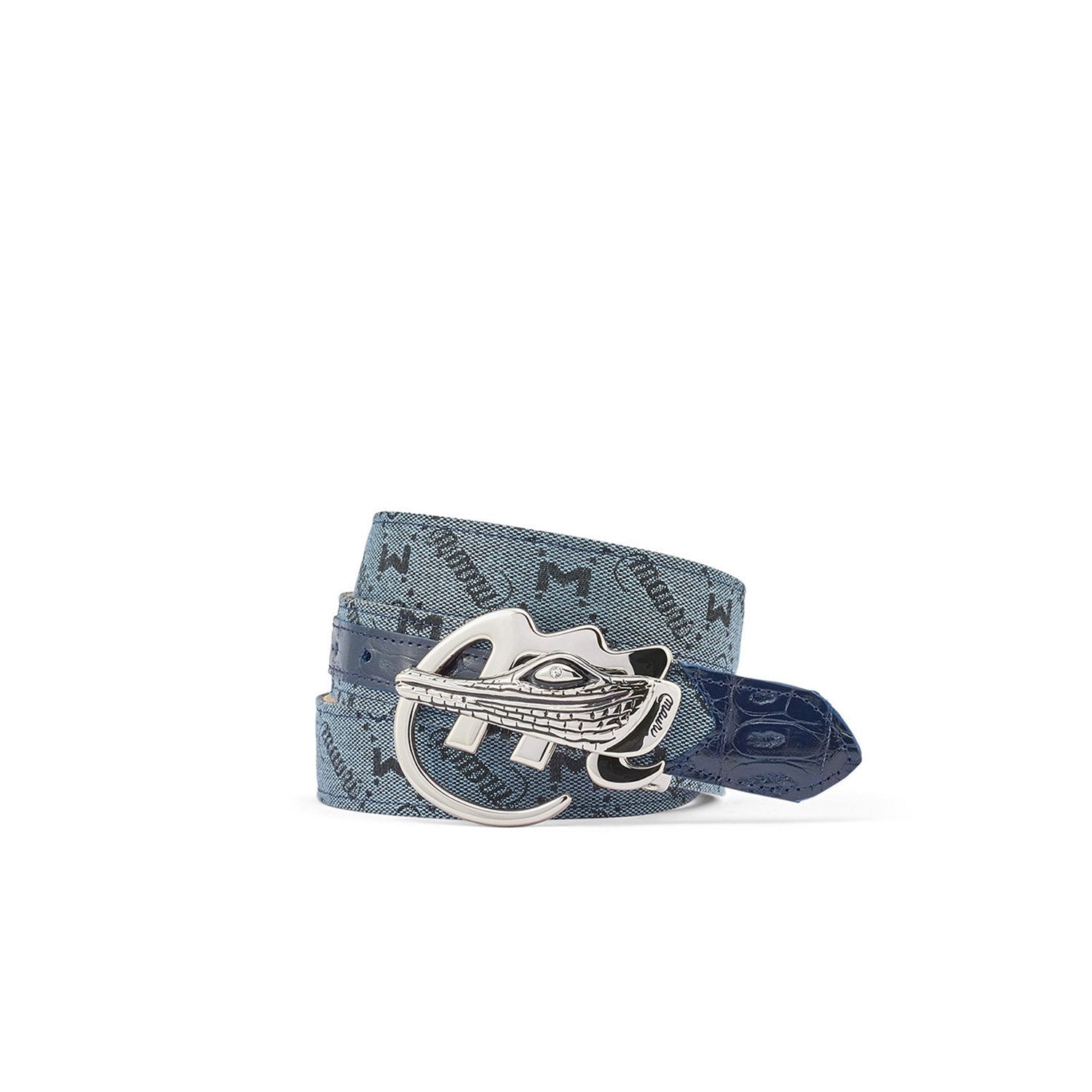 - Mauri 0100/35 Men's Wonder Blue Exotic Crocodile / Mauri Fabric Belt (MAB1042)