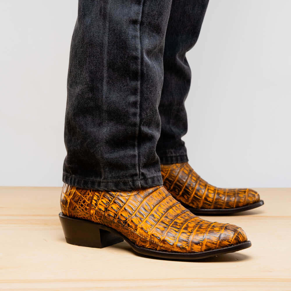 - Marco Di Milano Phoenix Men's Shoes Mustard Brown Exotic Crocodile Skin Cowboy Boot (MDM1234)