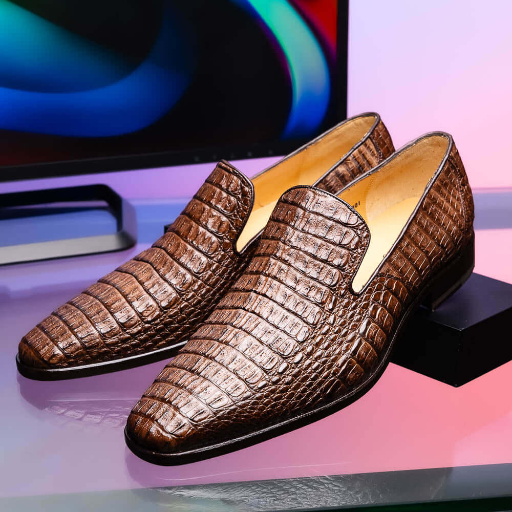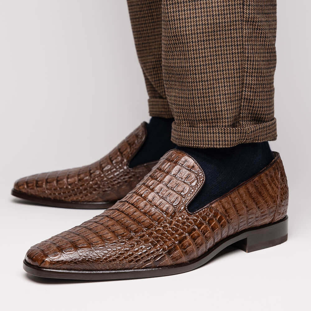 - Marco Di Milano Trento Men's Shoes Brown Genuine Caiman Crocodile Slip-On Loafers (MDM1115)