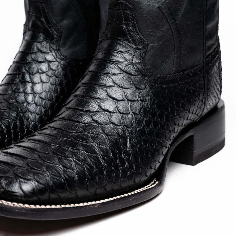 The MISSOURI boot captures the spirit of the West through bold design, master craftsmanship, and premium exotic materials. Handcrafted using genuine Python skin on the vamp and full-grain leather on the shaft, it delivers rich texture and visual contrast. The defining square toe adds a confident, modern twist to the classic cowboy profile, while the signature red leather lining brings a refined interior finish. Whether you're headed out on the town or elevating your everyday wardrobe, the MISSOURI boot offers standout style and comfort for the man who walks his own path.