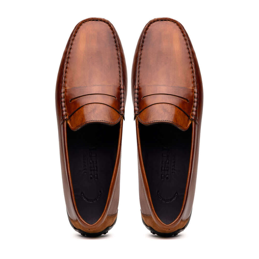 - Zelli Italia Monza Men's Shoes Cognac Calf-Skin Leather Driver (ZEL1046)