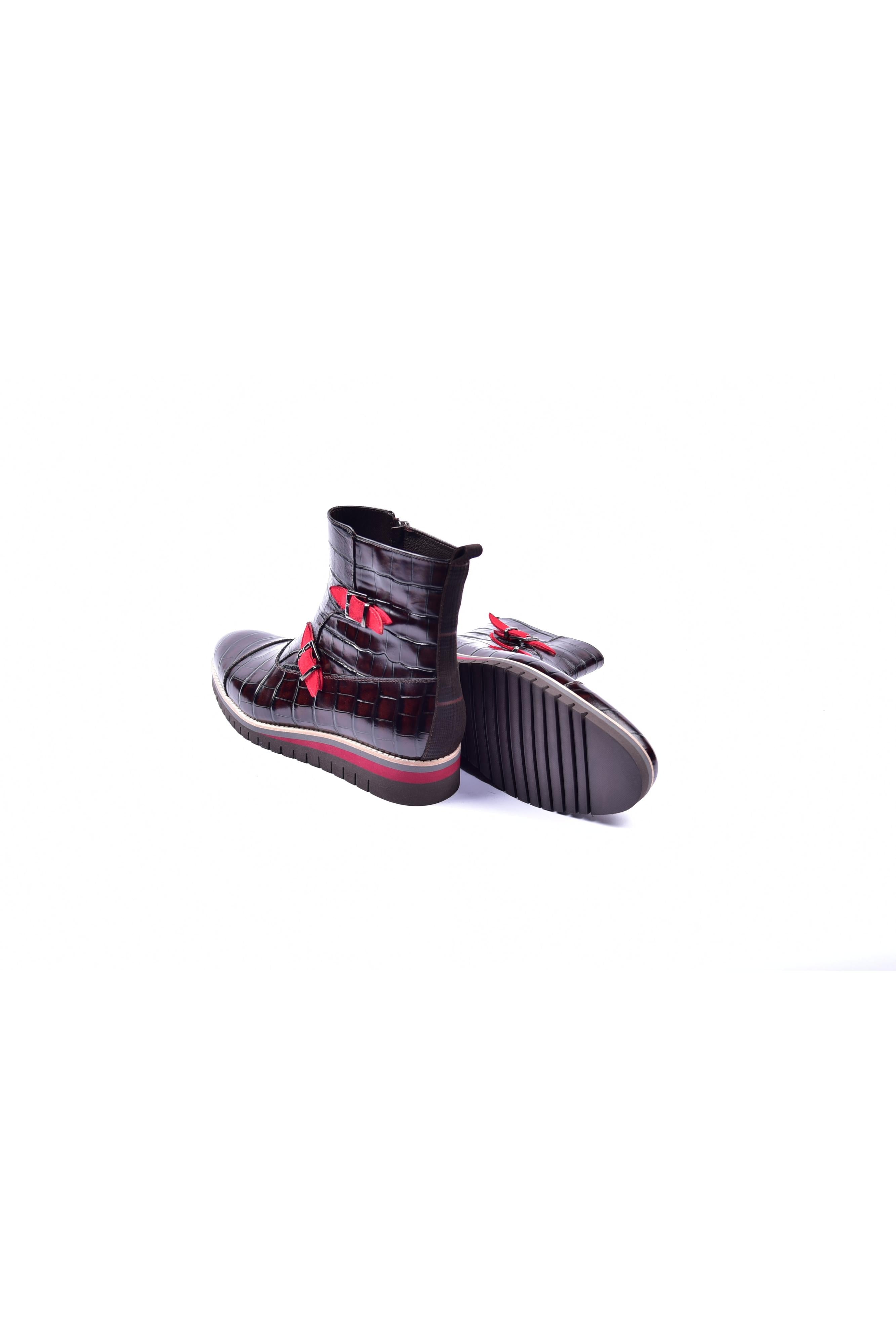 Corrente 5784C Embossed Leather Double Monk-Strap Boot - Brown captures the essence of refined European craftsmanship. Crafted from premium calf-skin leather embossed with a crocodile pattern, this boot offers a sleek, sophisticated silhouette that perfectly blends classic style with modern practicality.