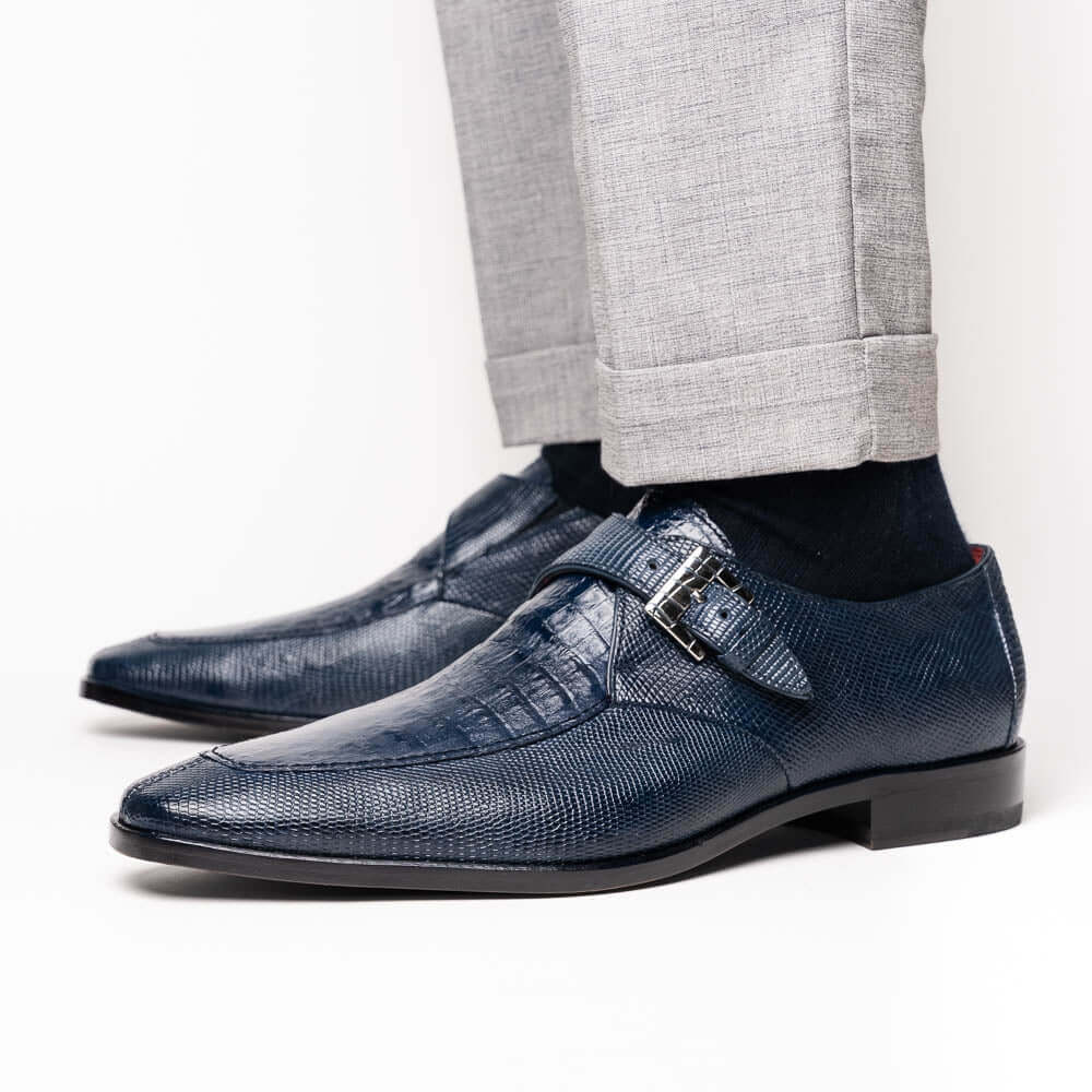 Marco Di Milano Toluca Men's Shoes Navy Exotic Lizard / Crocodile Single Monk-Strap (MDM1127)