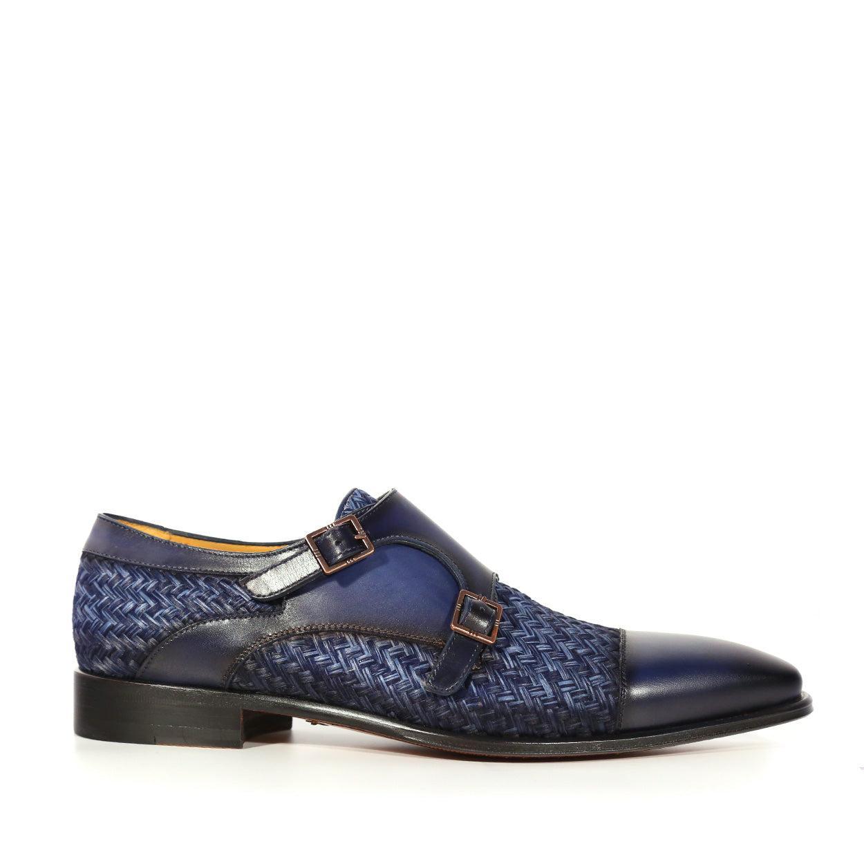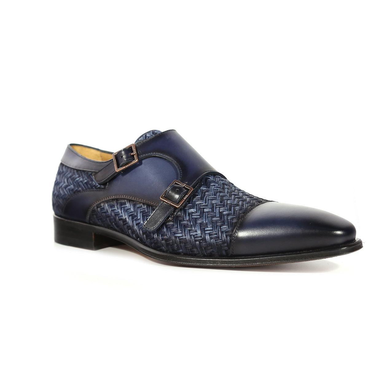 - Mezlan Palomar 20688 Men's Shoes Blue Fabric / Calf-Skin Leather Dress/ Formal Monk-Straps Loafers (MZ3623)