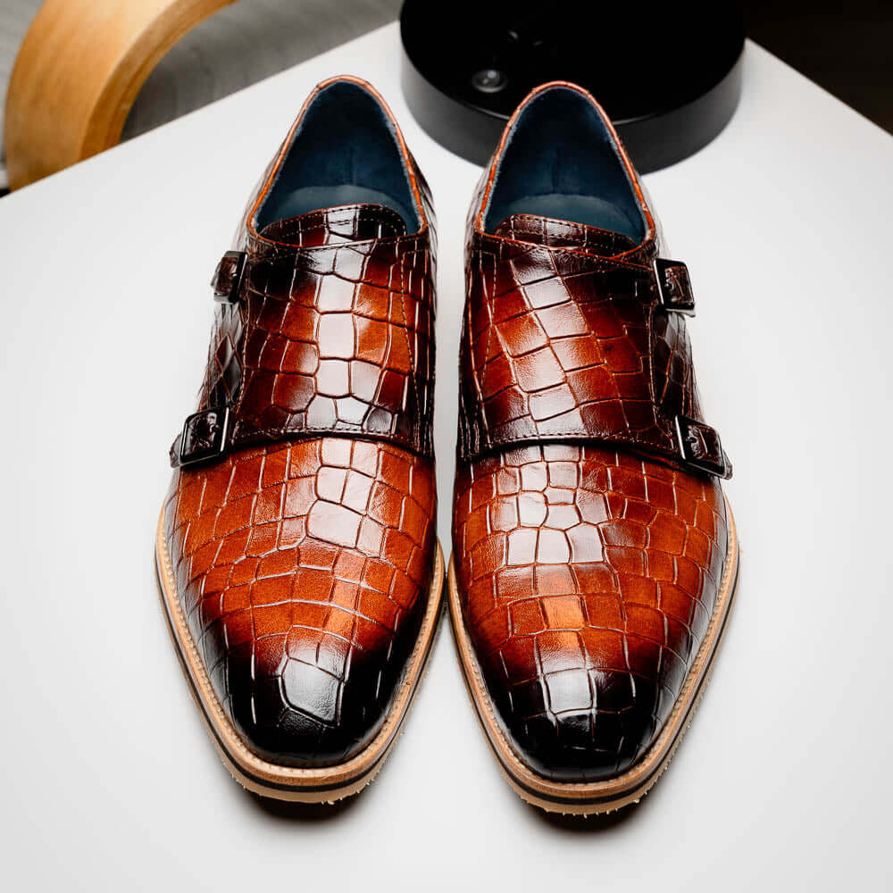 • Zelli Italia Legerra Men's Shoes Cognac Crocodile Print Calf-Skin Leather Monk-Strap (ZEL1074)