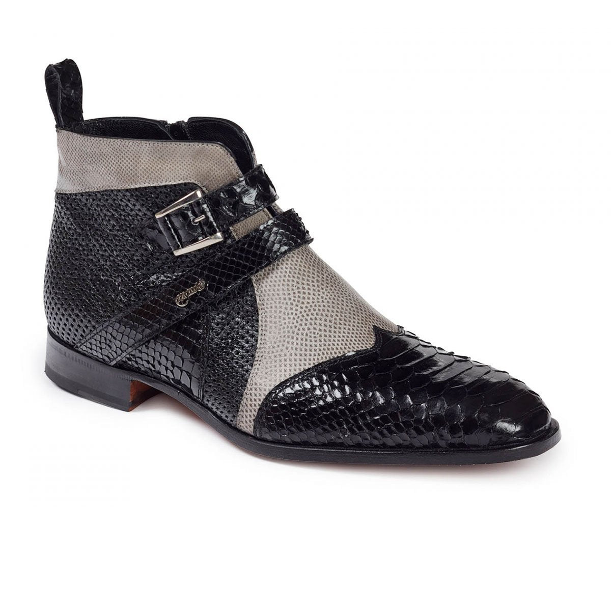 Mauri Men's Shoes Bellini Black & Grey Snake, Lizard & Ostrich Boots Art 4828 (MA4640) (Special Order)
