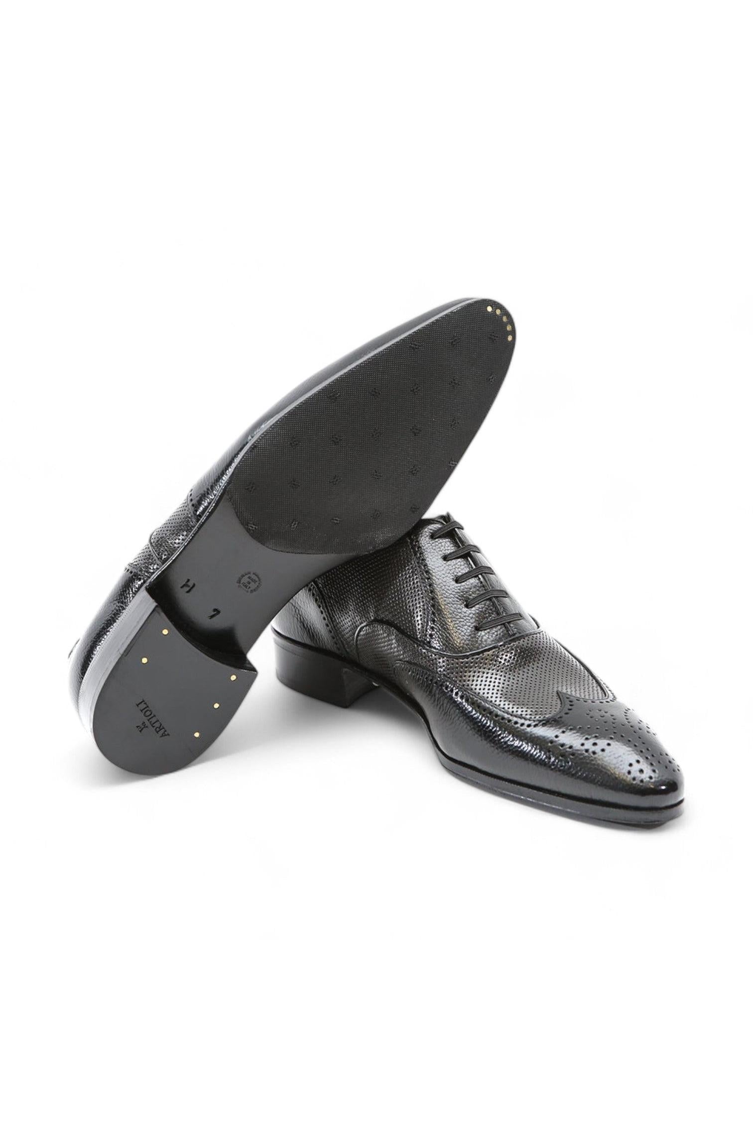 Featuring a classic wingtip brogue design with detailed perforations, the breathable kangaroo leather enhances elegance. The leather outsole with a rubber grip patch provides secure traction without compromising sleek style. Versatile, these shoes transition effortlessly from boardroom to evening events.