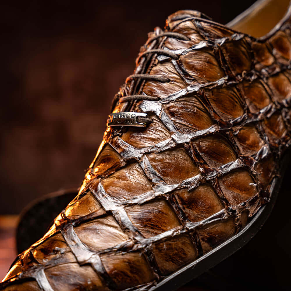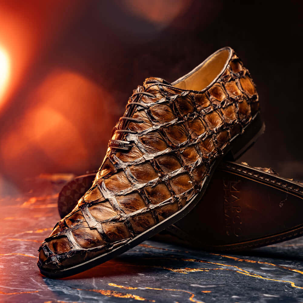 - Marco Di Milano Olivieri Men's Shoes Clear Brown Exotic Pirarucu Leather Whole cut Oxfords (MDM1028)