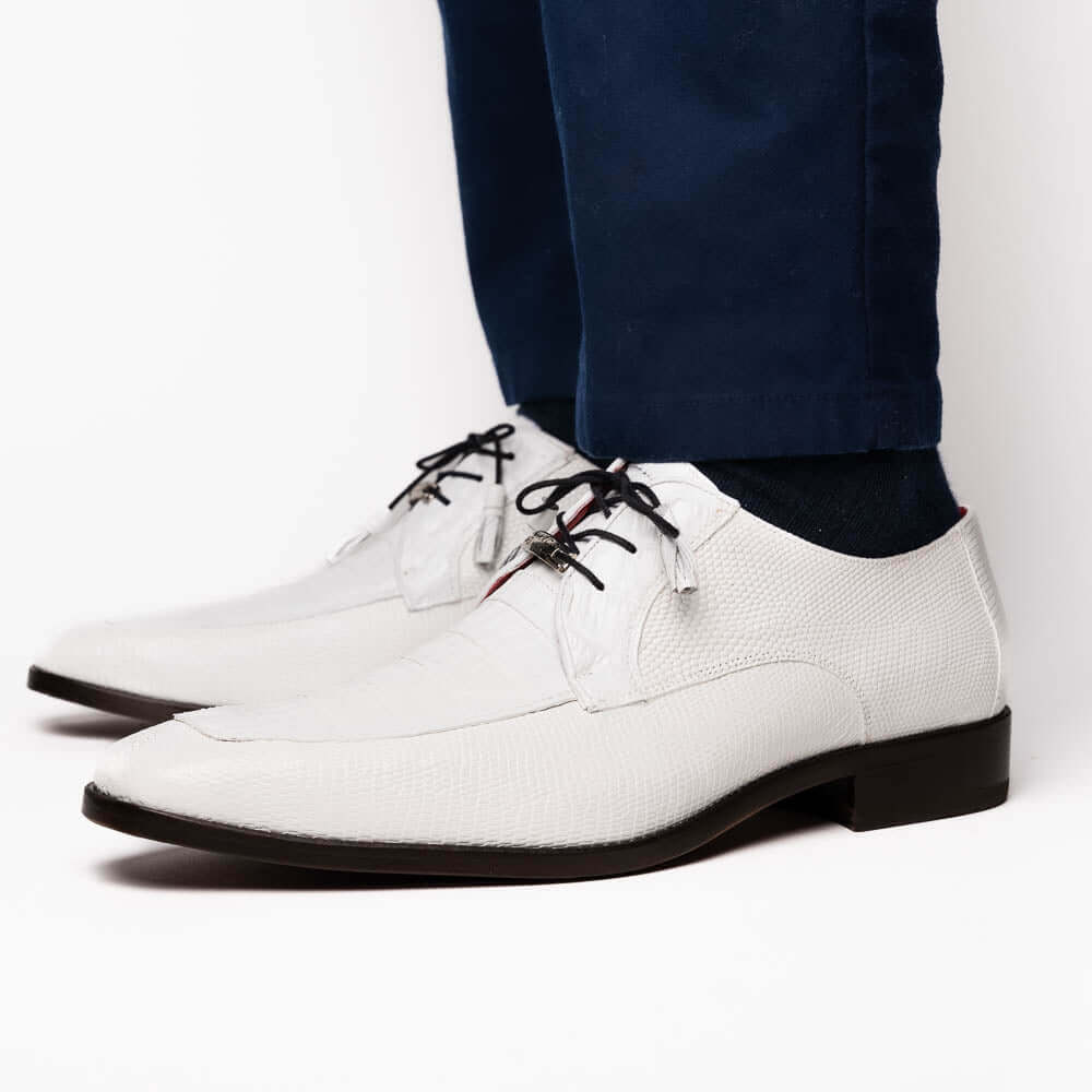 Marco Di Milano Merida Men's Shoes White Lizard & Caiman Crocodile Derby (MDM1132)