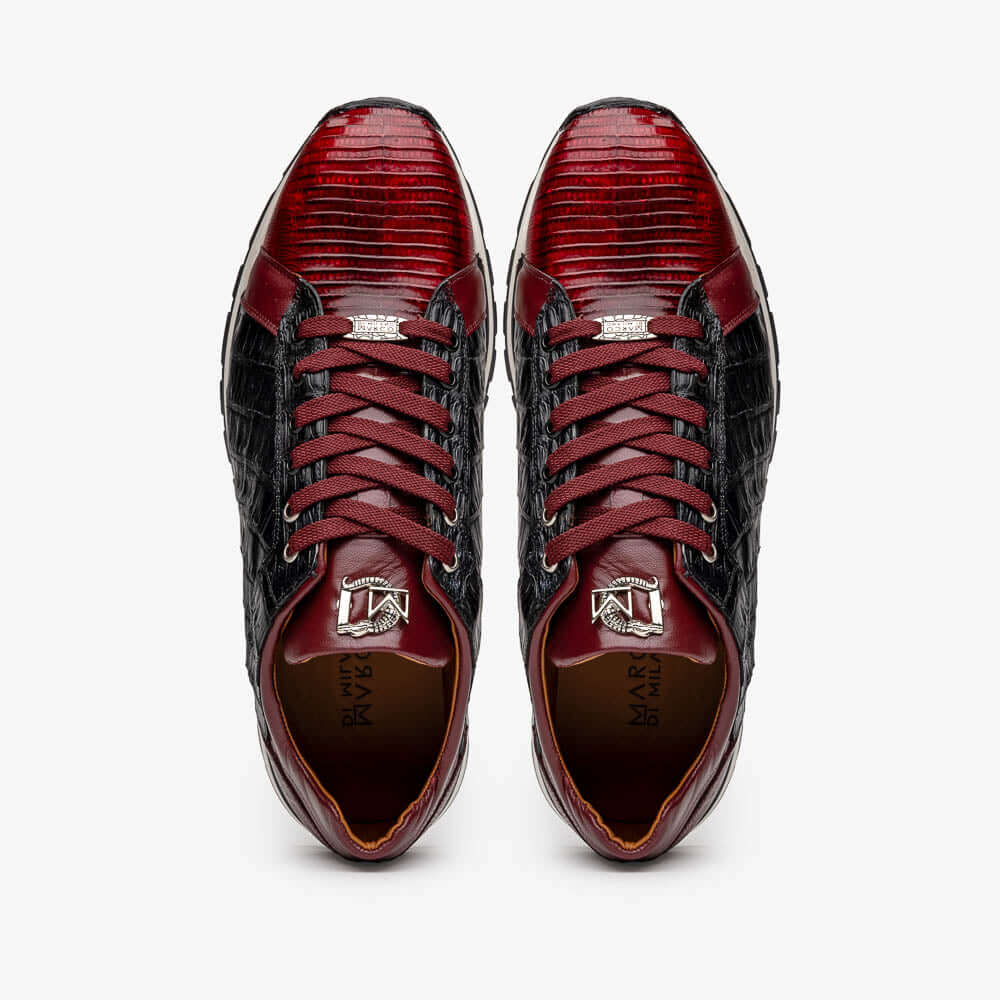 - Marco Di Milano Portici Men's Shoes Wine & Black Exotic Lizard / Crocodile Casual Sneakers (MDM1016)