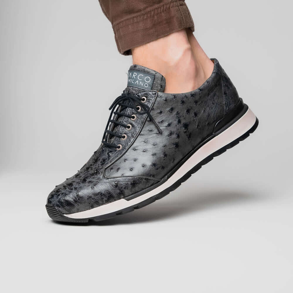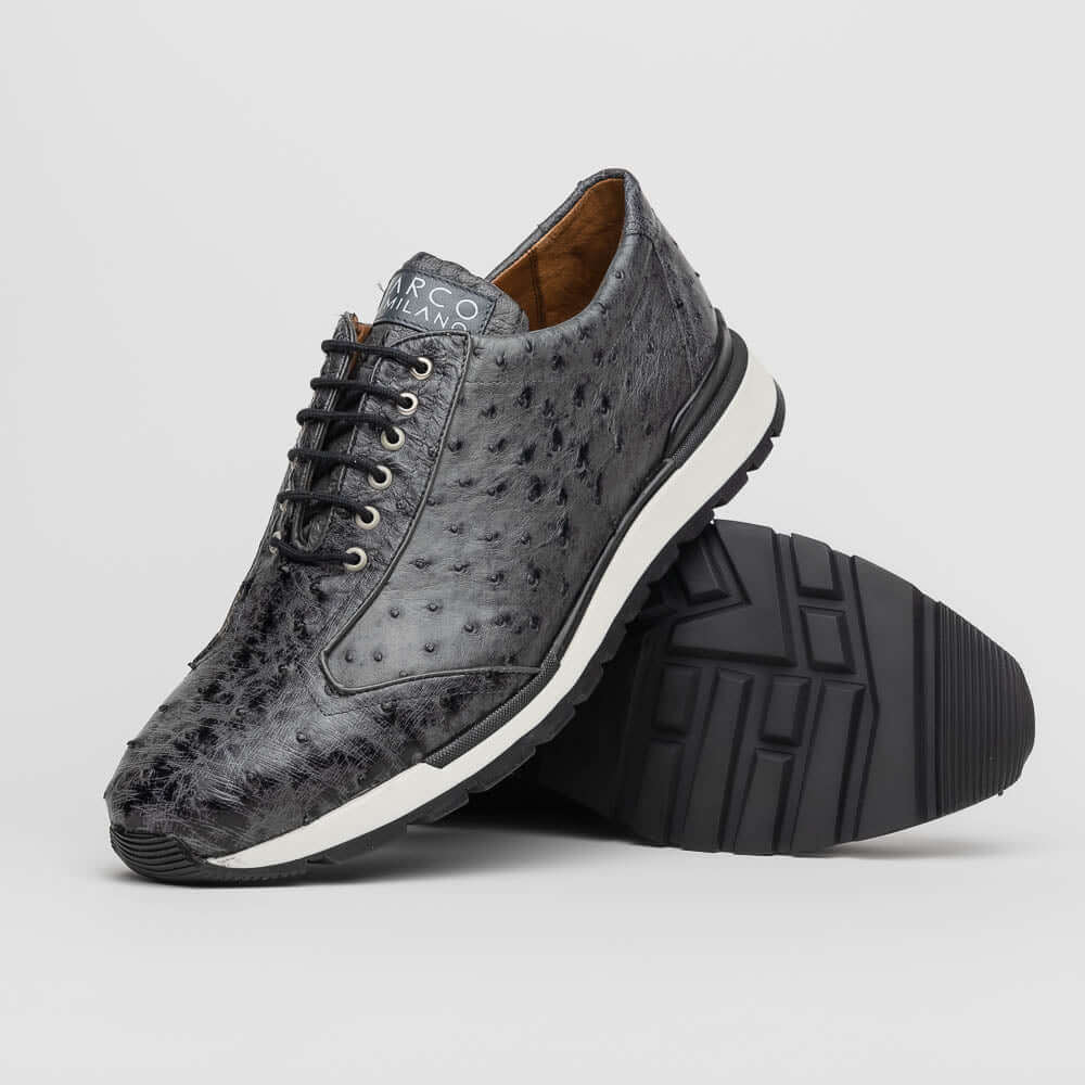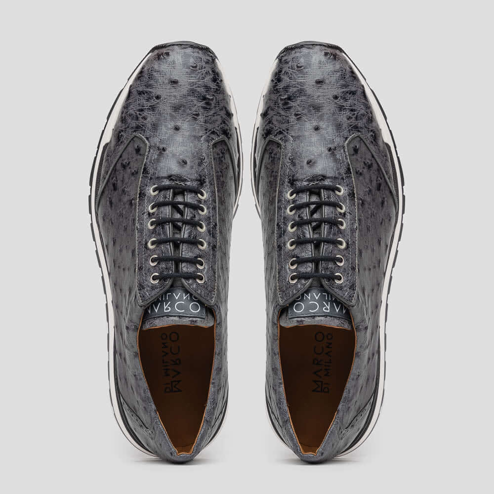 - Marco Di Milano Scanno Men's Shoes Antique Gray Exotic Ostich Casual Sneakers (MDM1050)