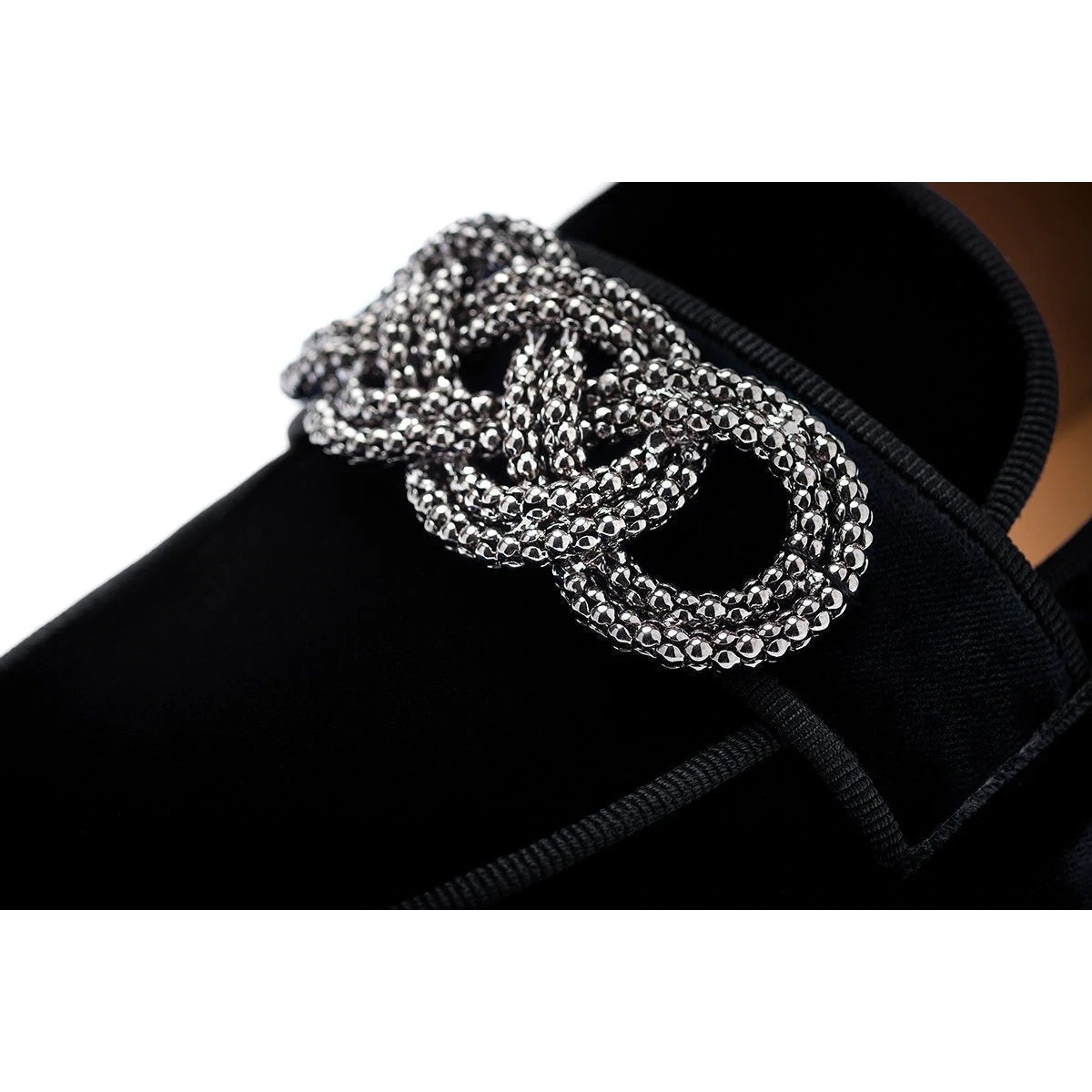 - SUPERGLAMOUROUS Morosino Men's Shoes Black Velour Velvet Slipper Loafers (SPGMS1033)