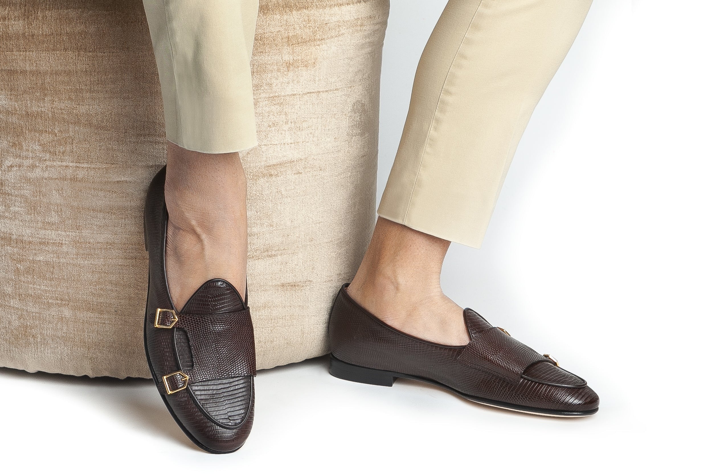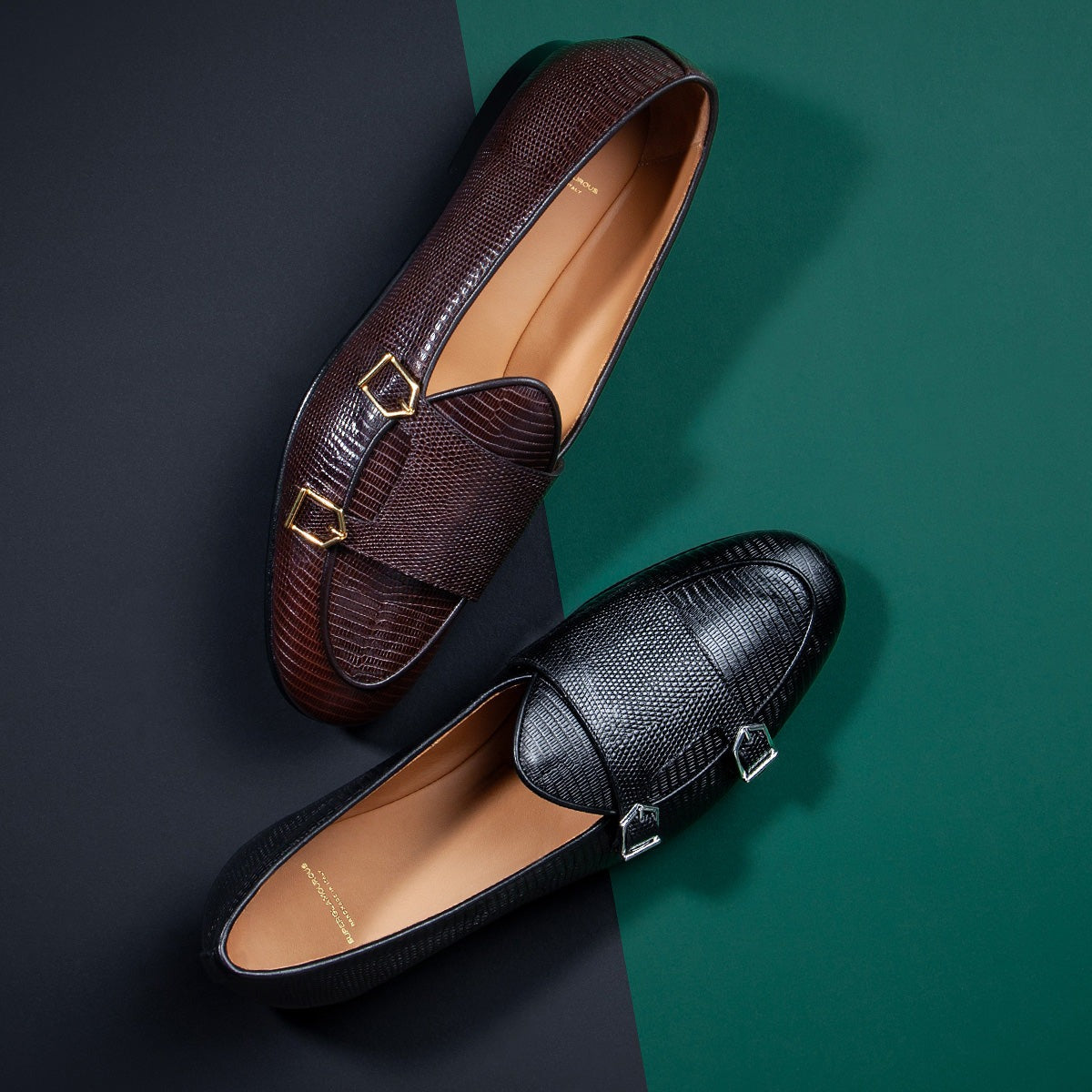 • SUPERGLAMOUROUS Tangerine 7 Men's Shoes Exotic Tejus Lizard Double Monk-Straps Belgian Loafers (SPGM1331)