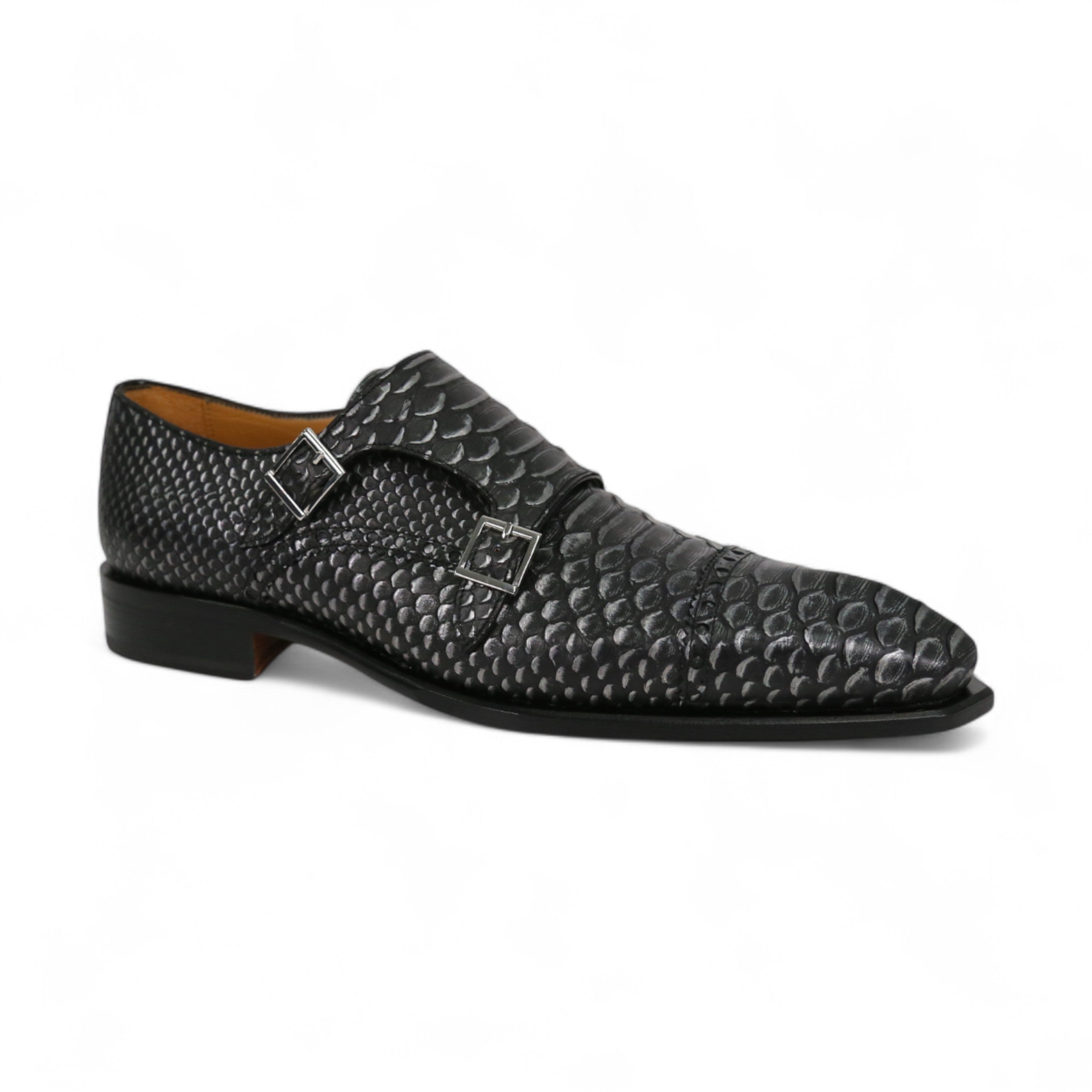 Ambrogio 40418-A147 Black Lorando Snake Print / Calf-Skin Leather Monk-Straps Loafers (AMBXS1010) by Ambrogio reflects the craftsmanship and heritage behind premium European design. Created with attention to detail and high-quality materials, this Men's Shoes delivers a refined balance of elegance, comfort, and lasting quality.