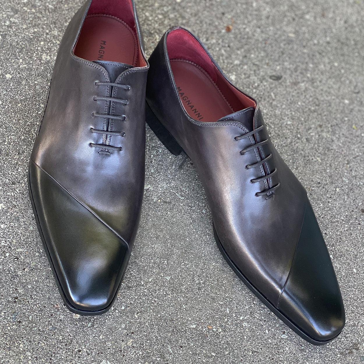 - Magnanni 23869 Men's Shoes Black & Gray Patina Leather Oxfords (MAGS1088)