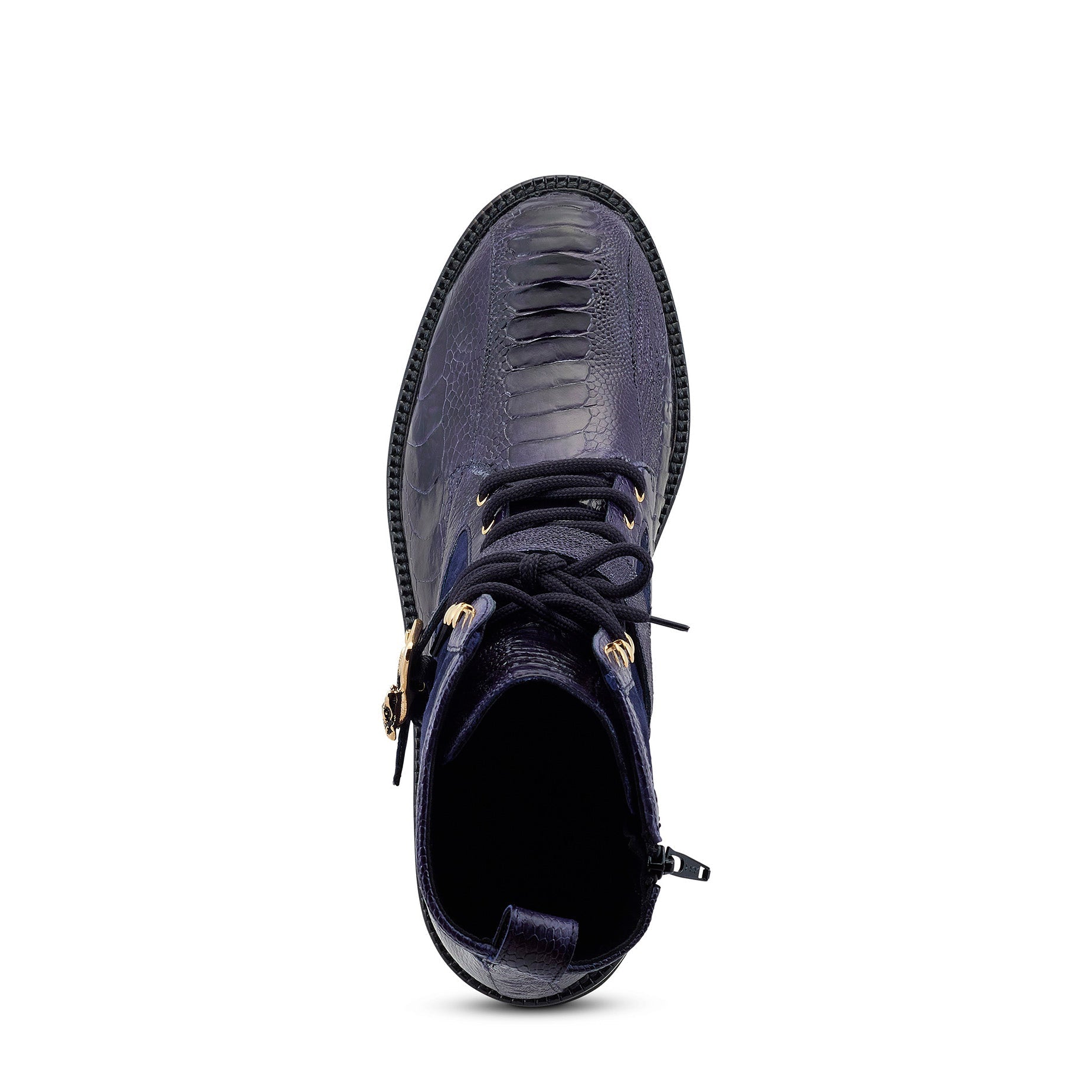 - Genuine Hand-Painted Exotic Ostrich Skin & Suede Leather Upper