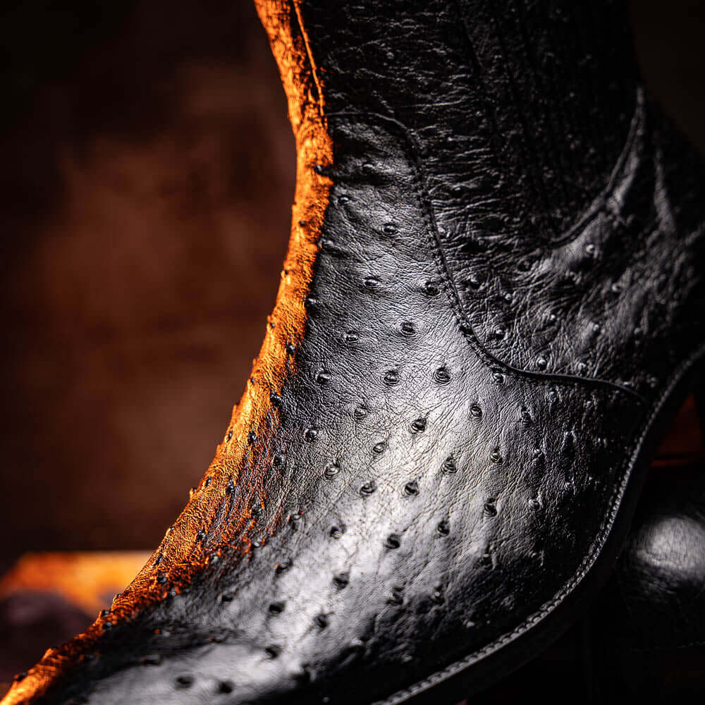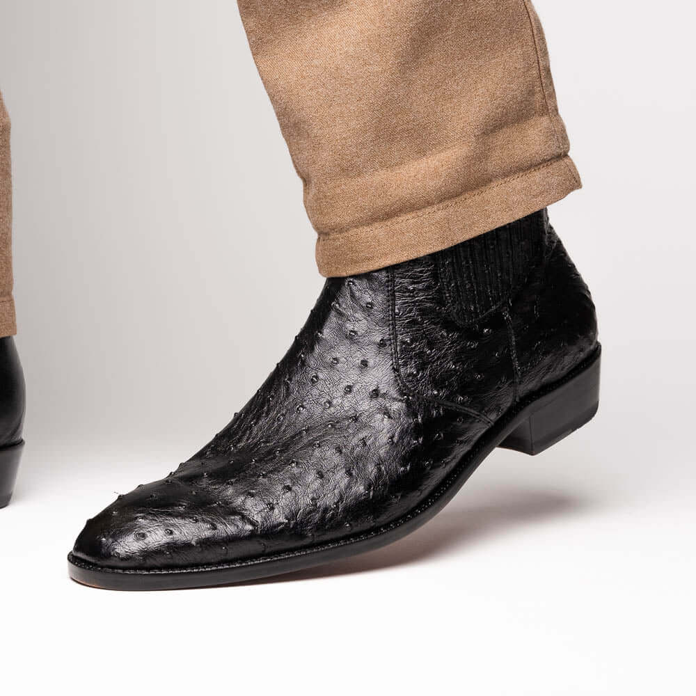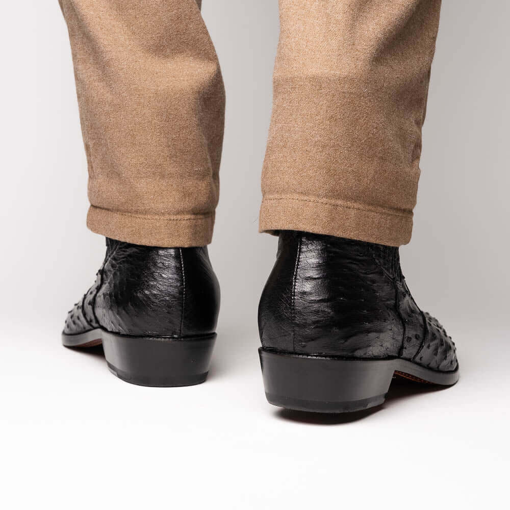 The GIORGIO is our genuine ostrich quill dress boot featuring a zip-up closure, a padded ankle, and a dressy leather outsole.