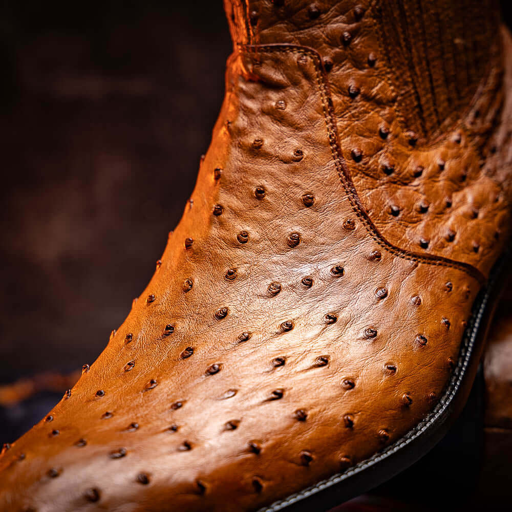 The GIORGIO is our genuine ostrich quill dress boot featuring a zip-up closure, a padded ankle, and a dressy leather outsole.