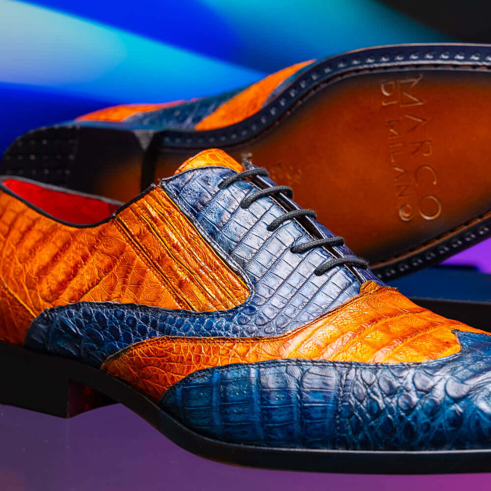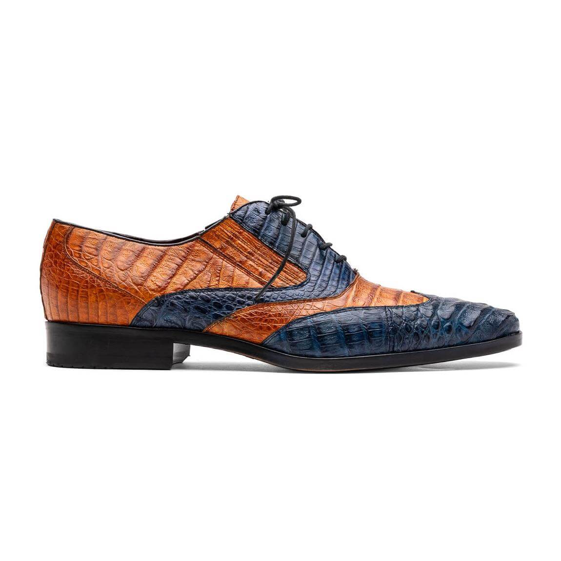 - Marco Di Milano Luciano Men's Shoes Blue & Brandy Exotic Crocodile Classic Wingtip (MDM1103)