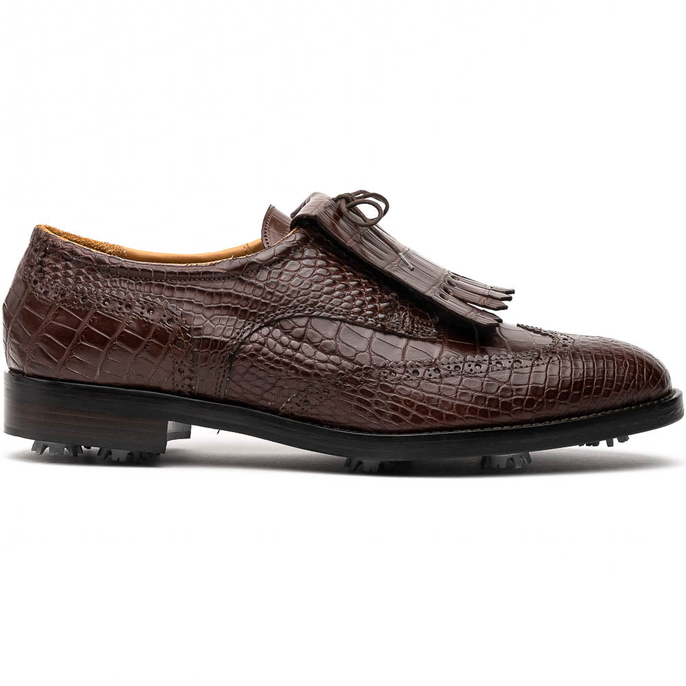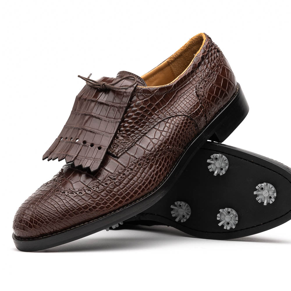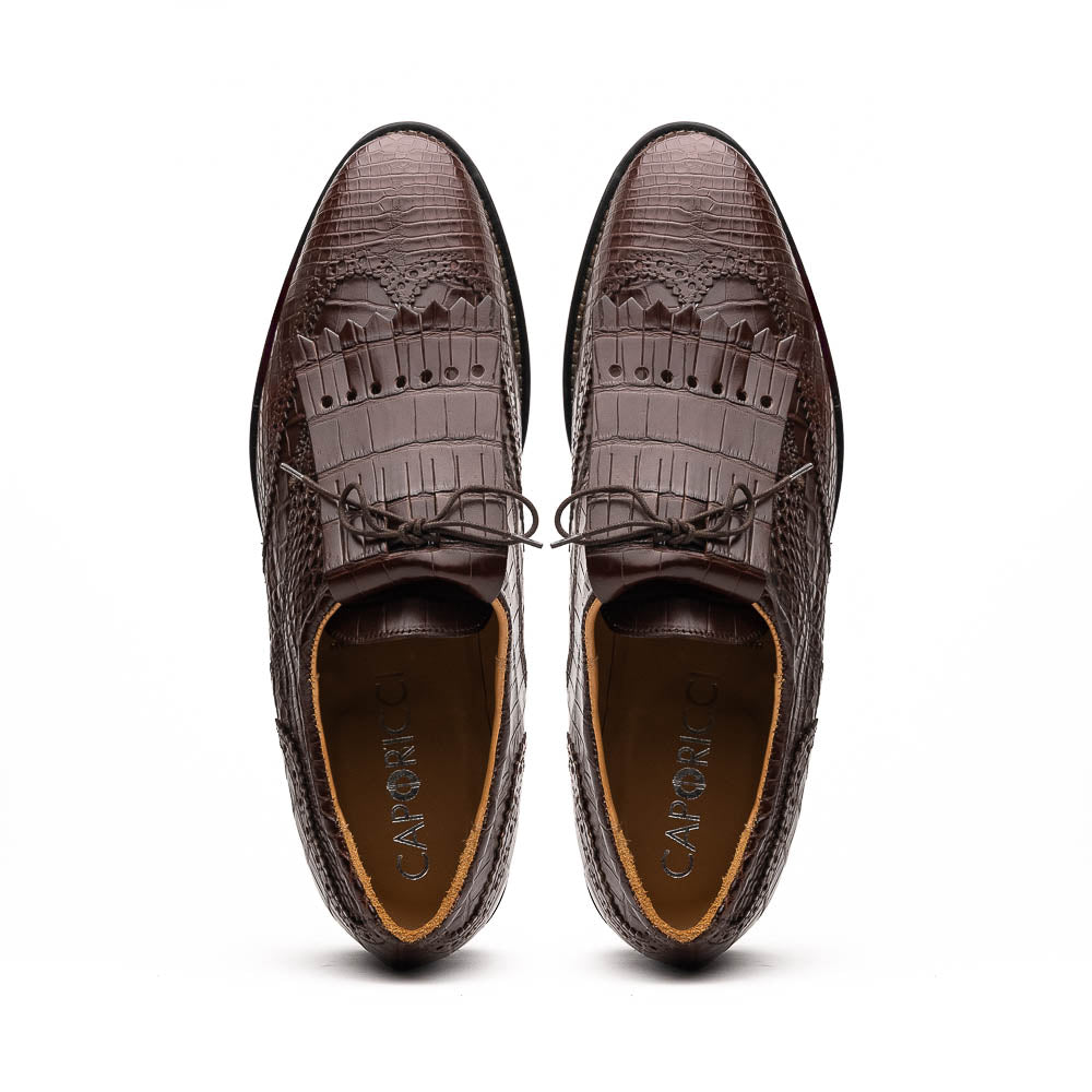 - Caporicci Italian Men's Shoes Brown Exotic Alligator Golf Oxfords (CAP2014)