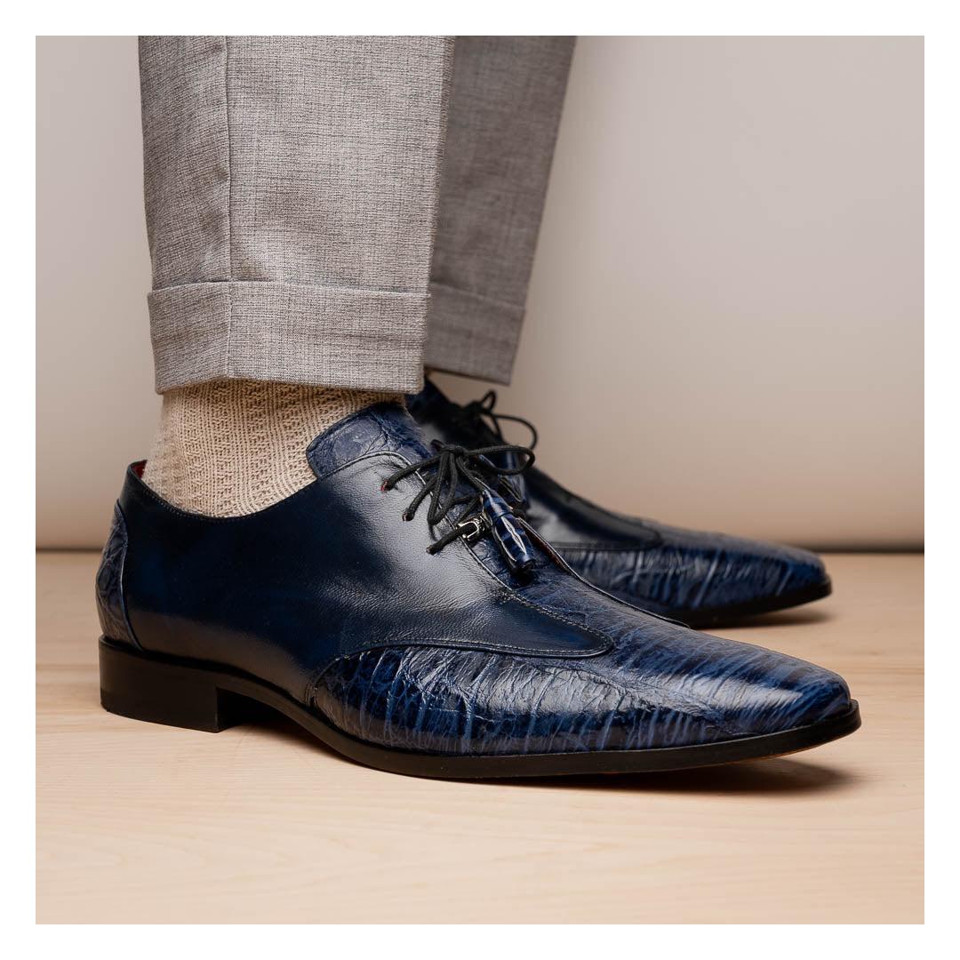 - Marco Di Milano Anzio Blue Exotic Alligator / Calfskin Leather Derby (MDM1037)