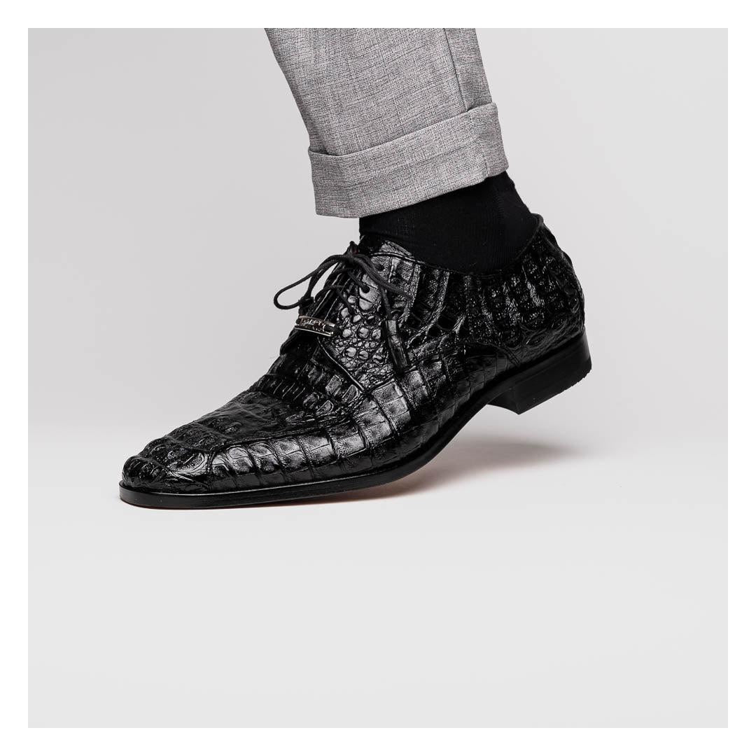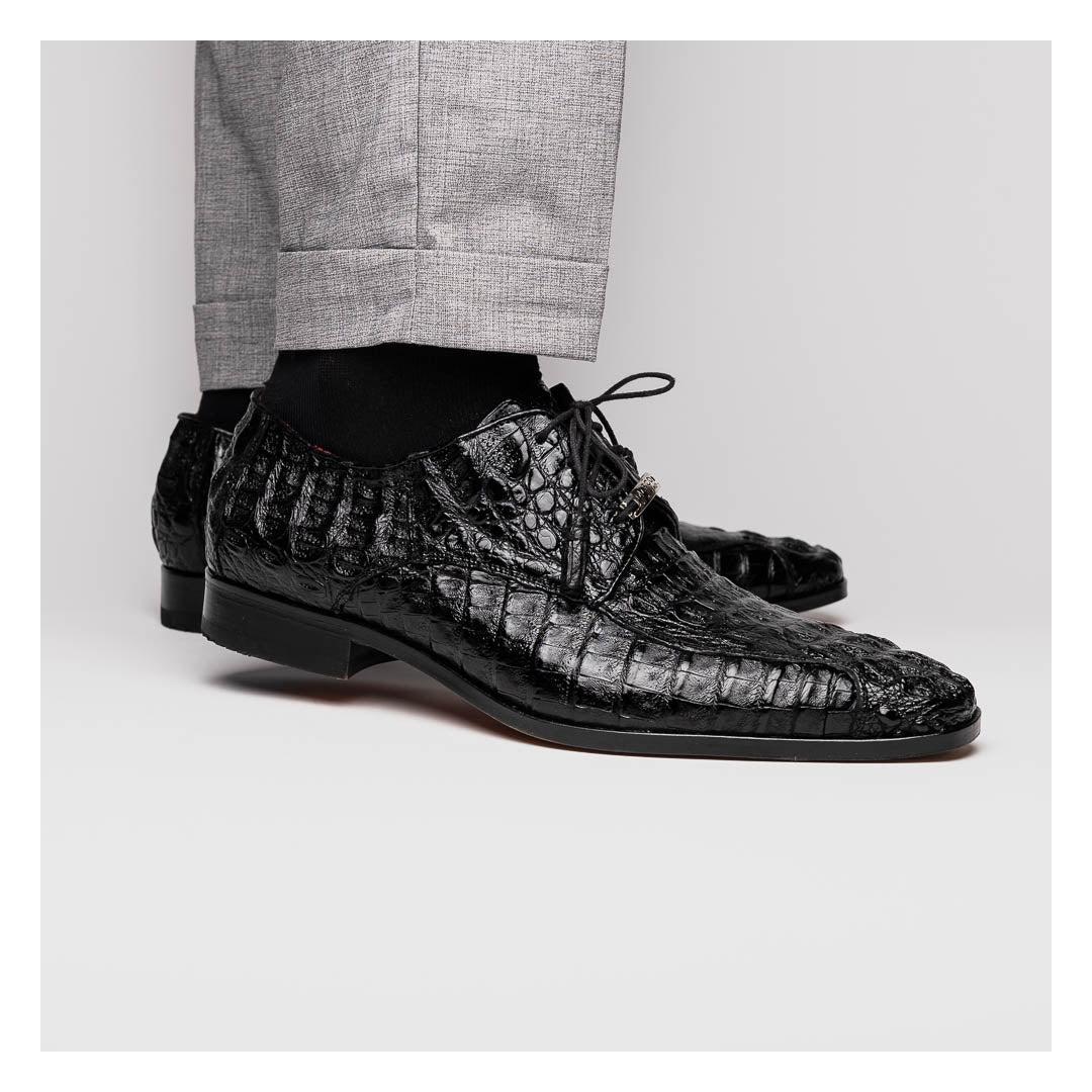 Marco Di Milano Apricena Men's Shoes Genuine Black Caiman Crocodile Derby (MDM1092)