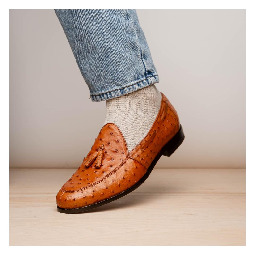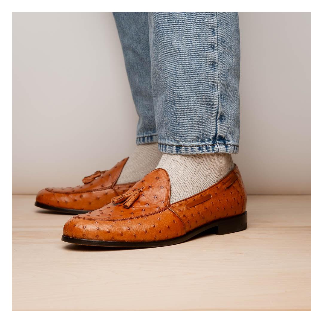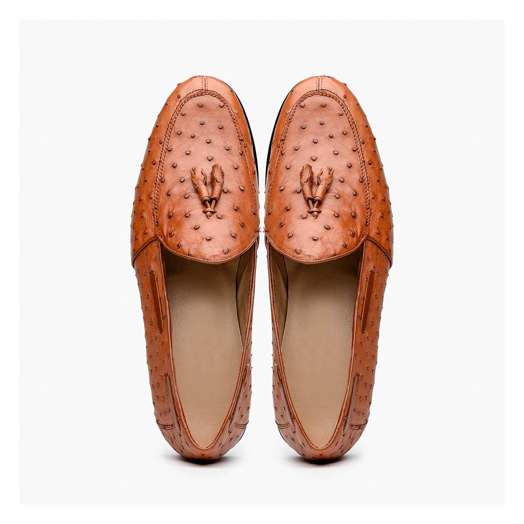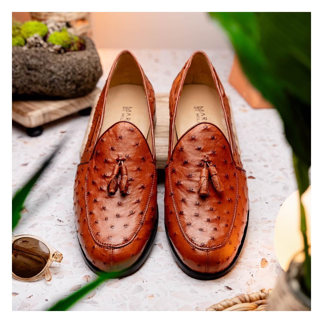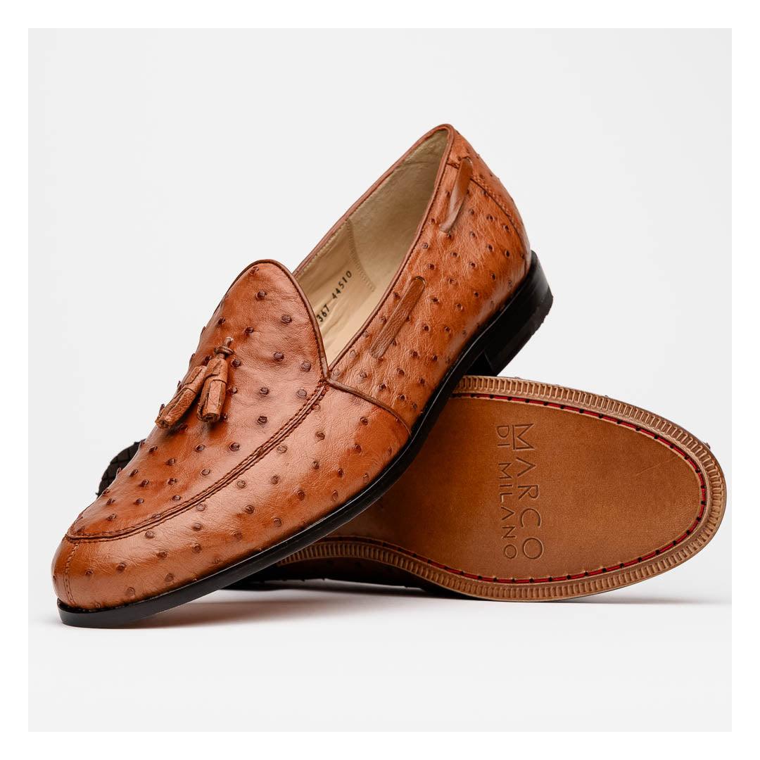 - Marco Di Milano Aubiere Men's Shoes Exotic Cognac Ostrich Tassels Loafers (MDM1198)