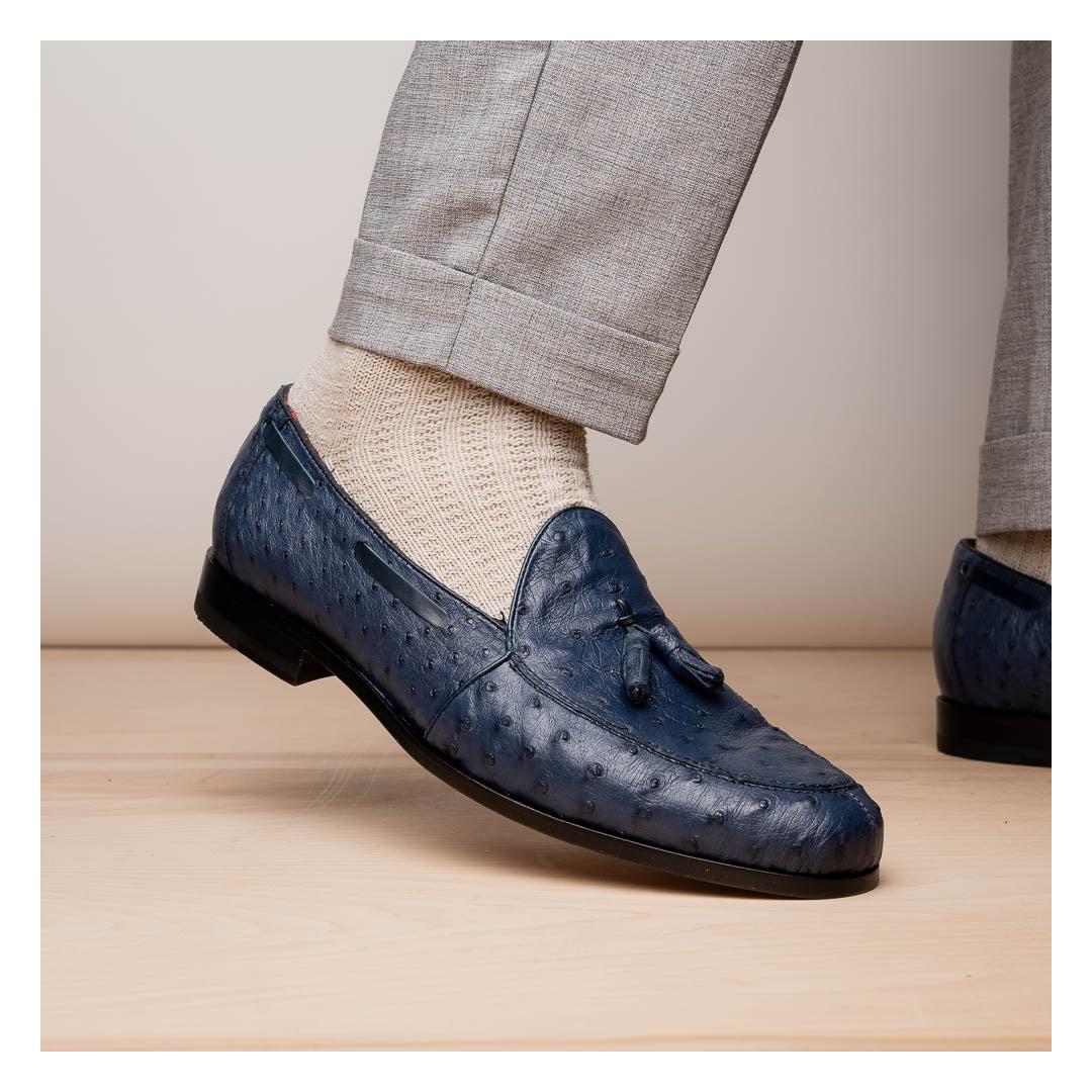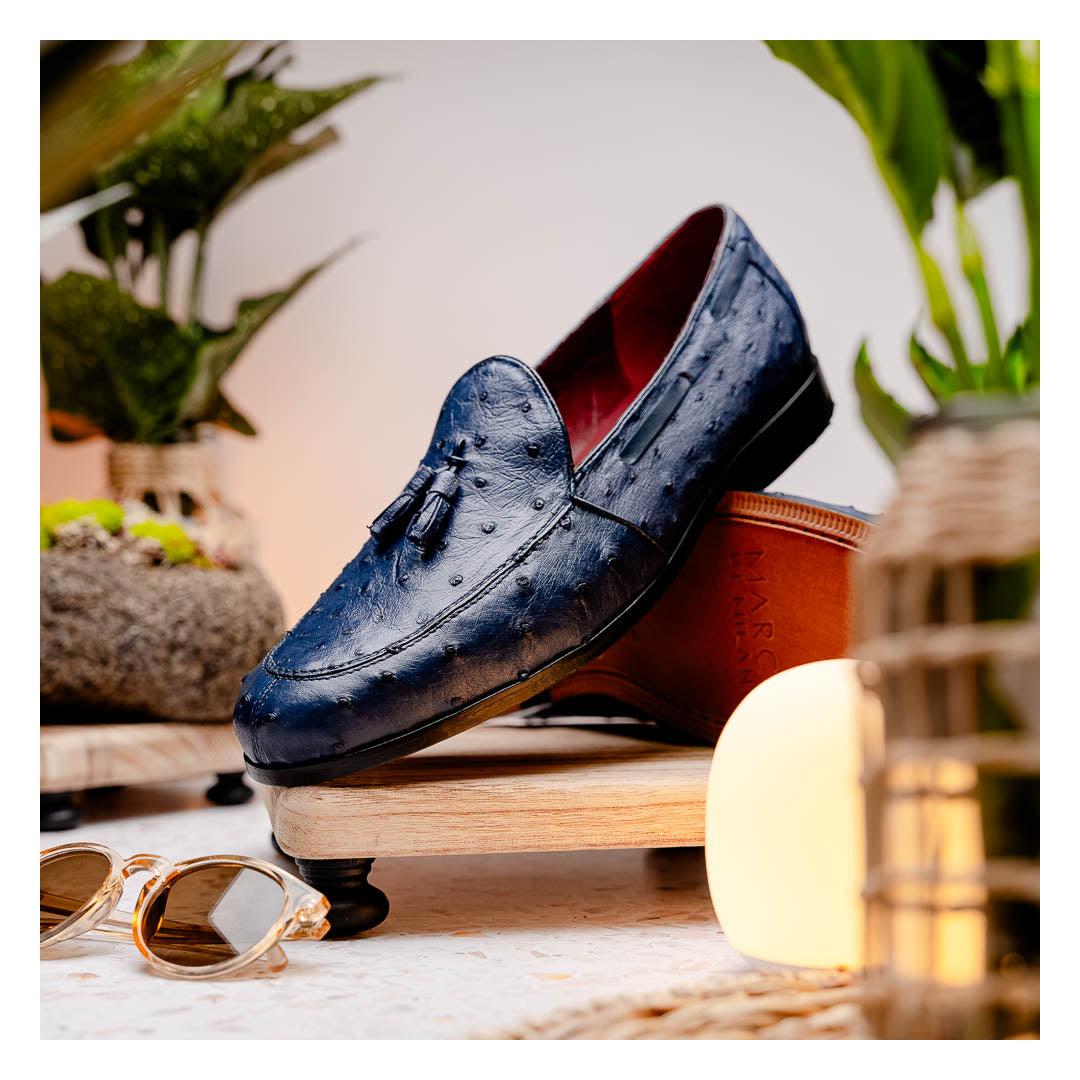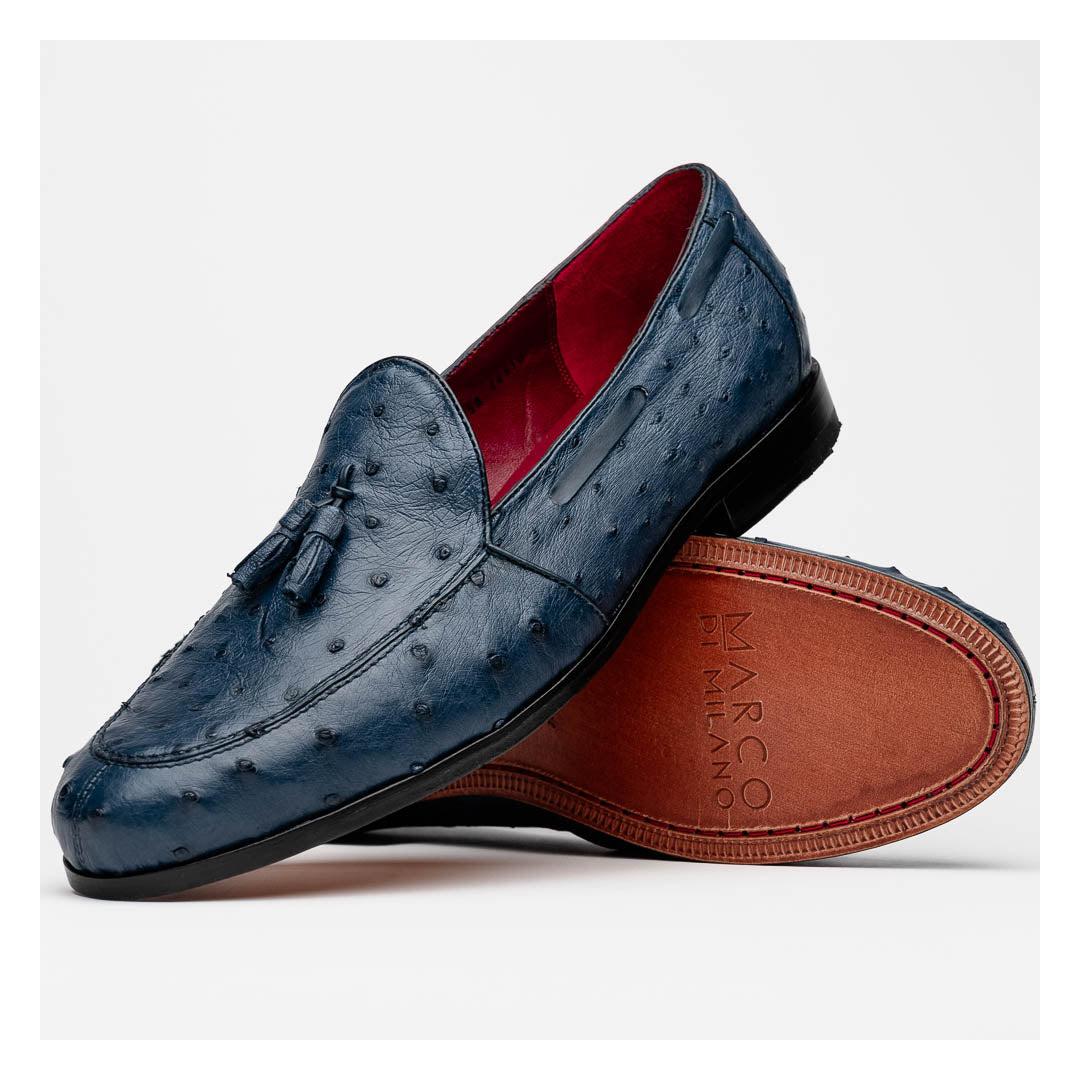 - Marco Di Milano Aubiere Men's Shoes Exotic Navy Ostrich Tassel Loafers (MDM1198)