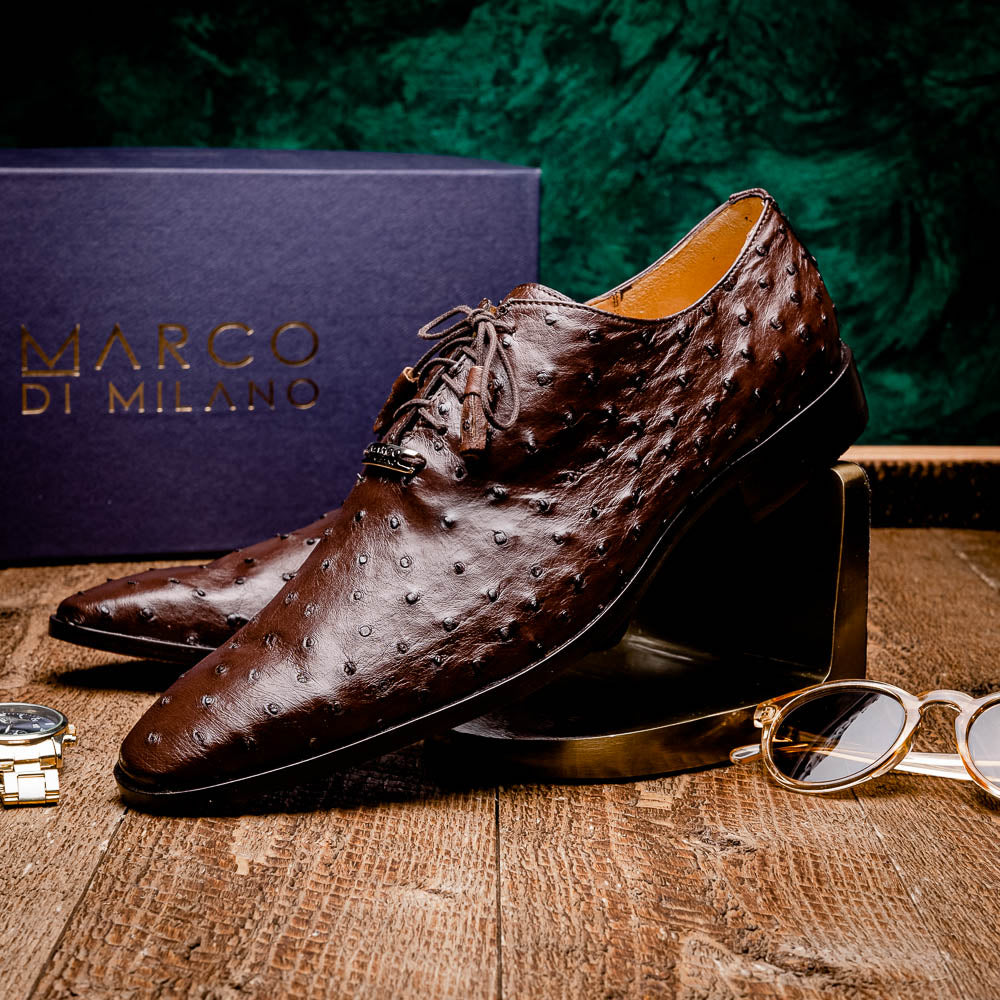 - Marco Di Milano Criss Men's Shoes Brown Exotic Ostrich Quill Dress Oxfords (MDM1073)