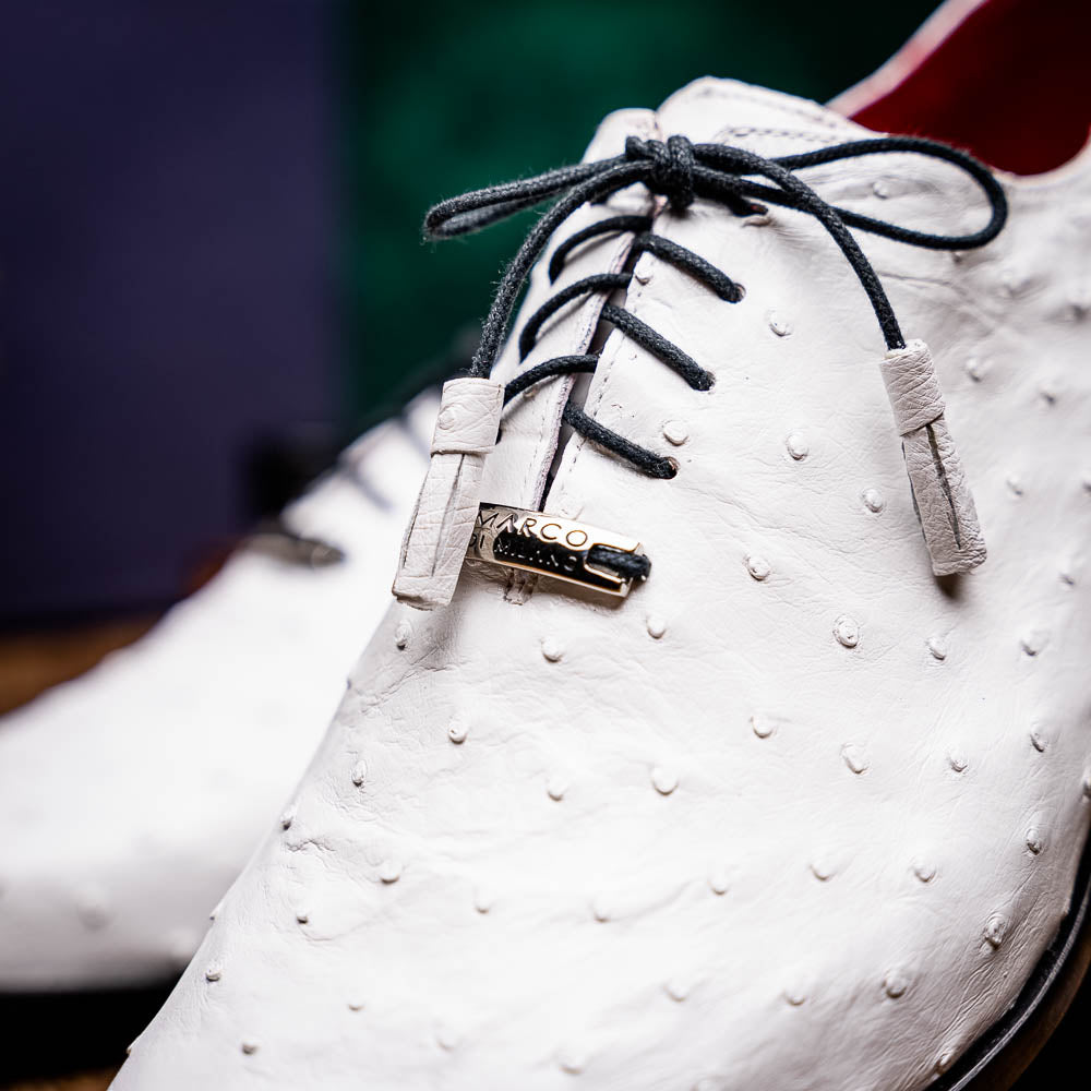 - Marco Di Milano Criss Men's Shoes White Exotic Ostrich Quill Dress Oxfords (MDM1073)