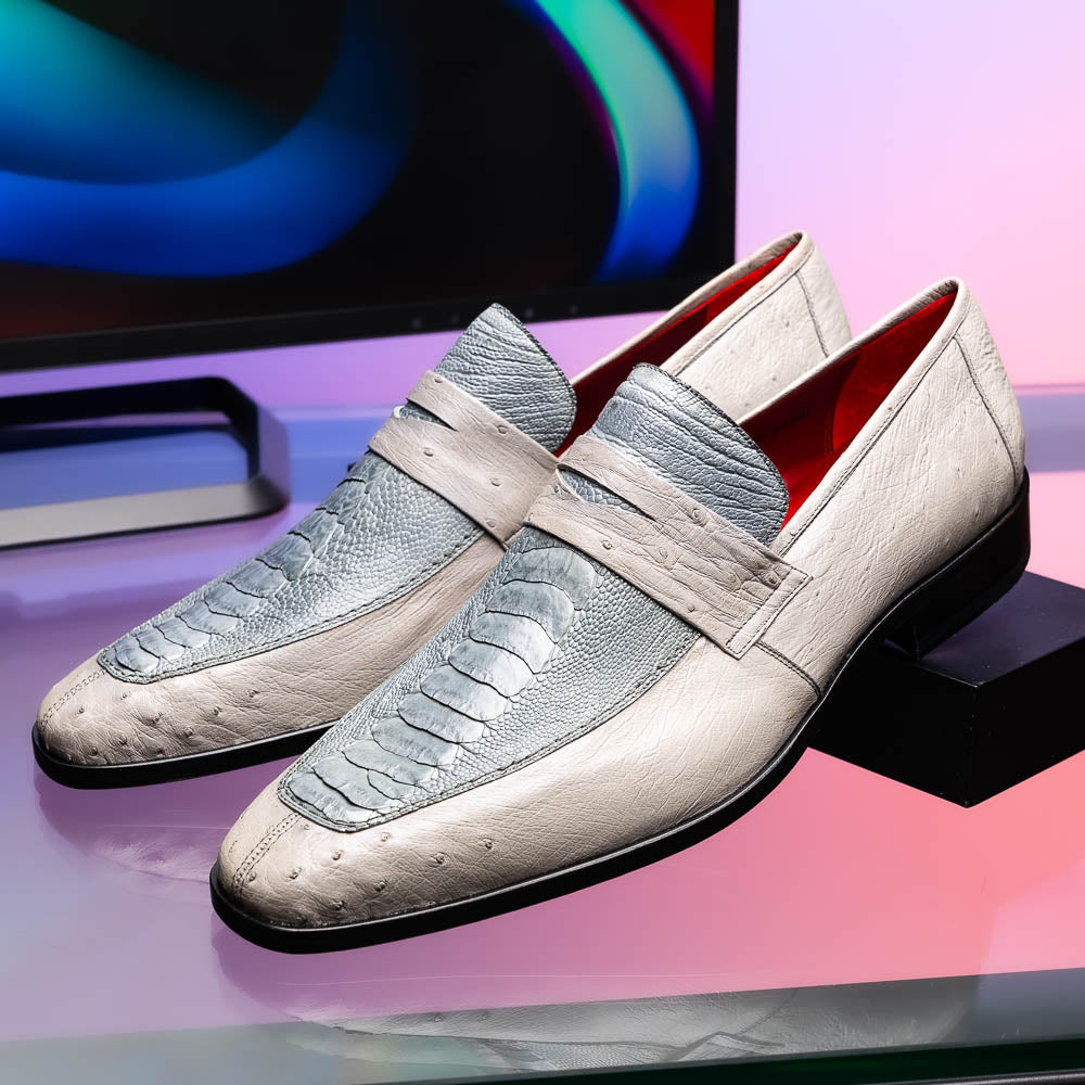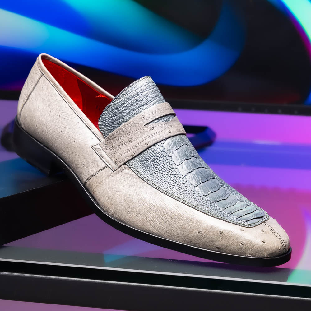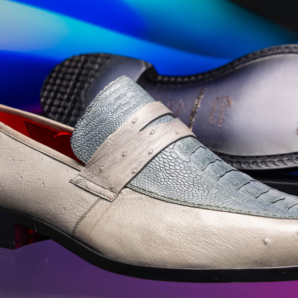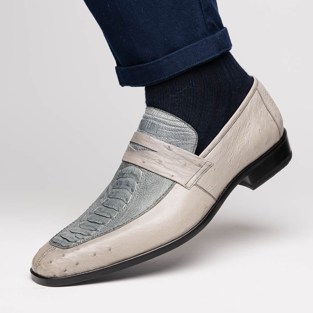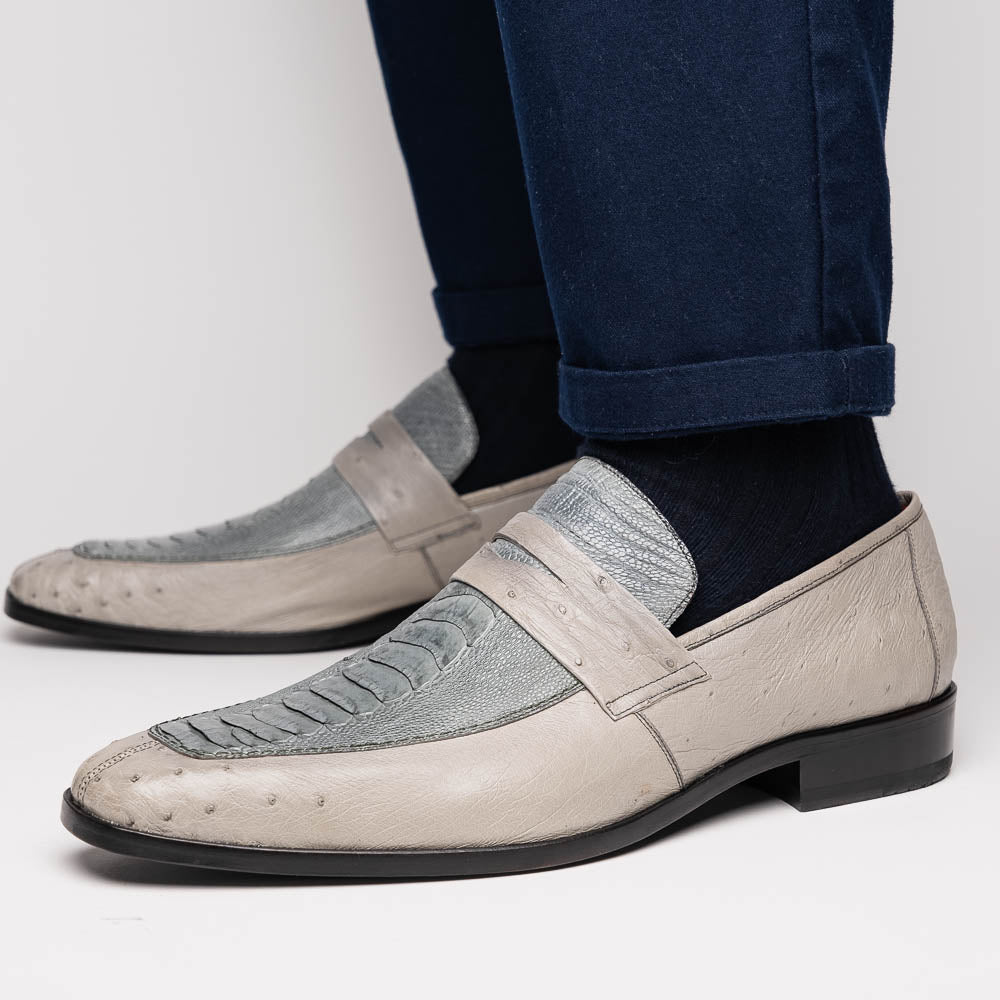 - Marco Di Milano Fangio Men's Shoes Gray Genuine Ostrich Leg / Ostrich Quill Penny Loafers (MDM1112)