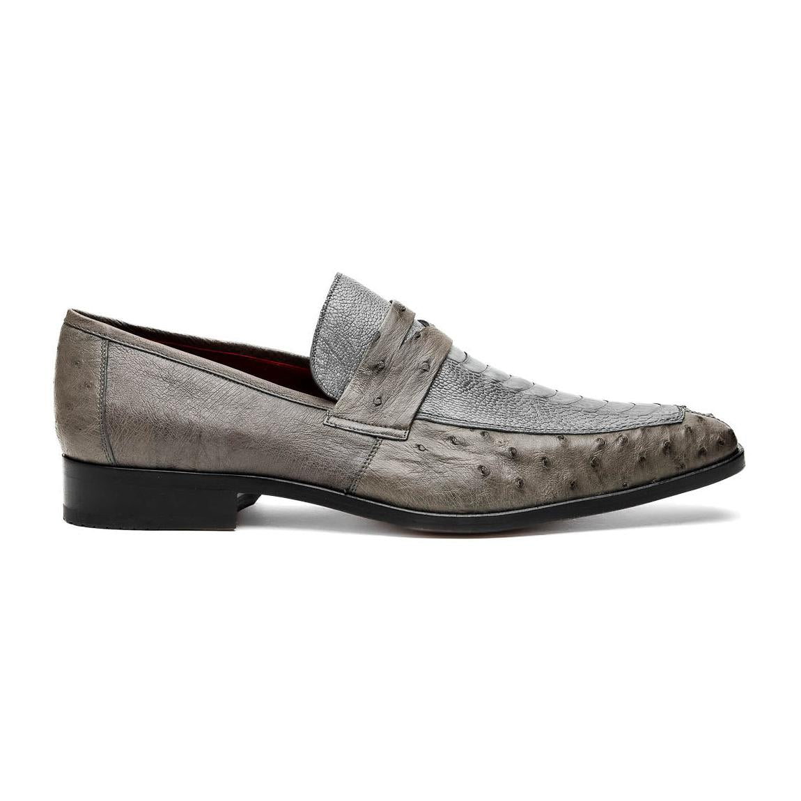 Marco Di Milano Fangio Men's Shoes Serpentine Gray Genuine Ostrich Leg / Ostrich Quill Penny Loafers (MDM1112)