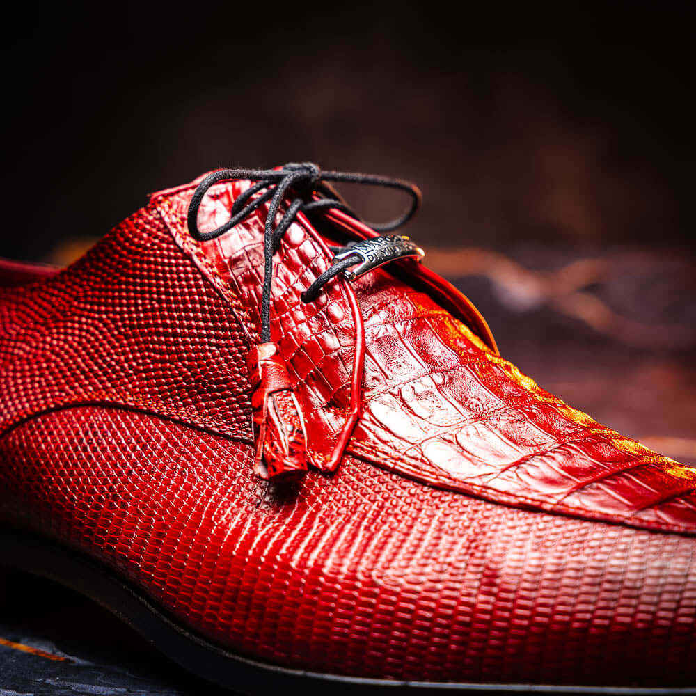 - Marco Di Milano Merida Men's Shoes Red Lizard & Caiman Crocodile Derby s (MDM1132)