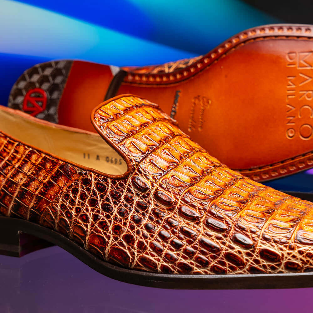 - Marco Di Milano Trento Men's Shoes Cognac Genuine Caiman Crocodile Slip-On Loafers (MDM1115)