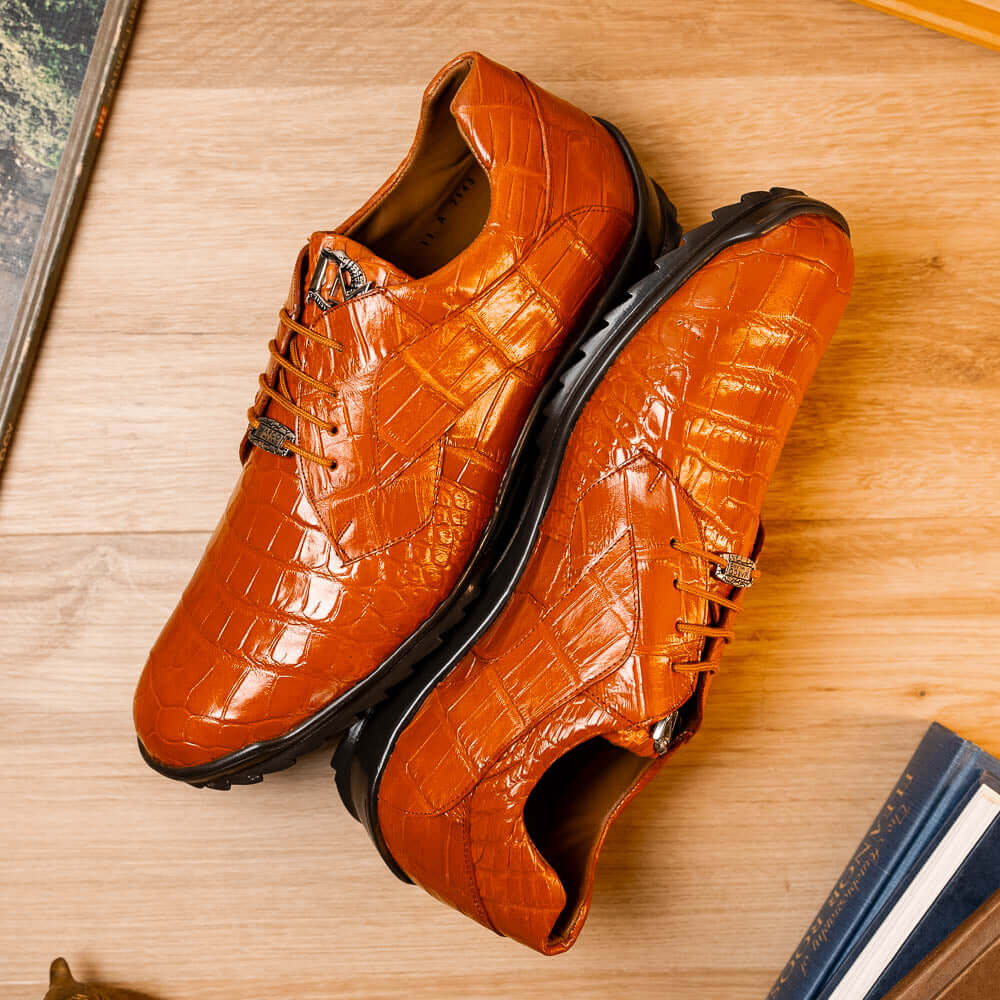 - Marco Di Milano Vulcan Men's Shoes Honey Exotic Alligator Derby Sneakers (MDM1195)