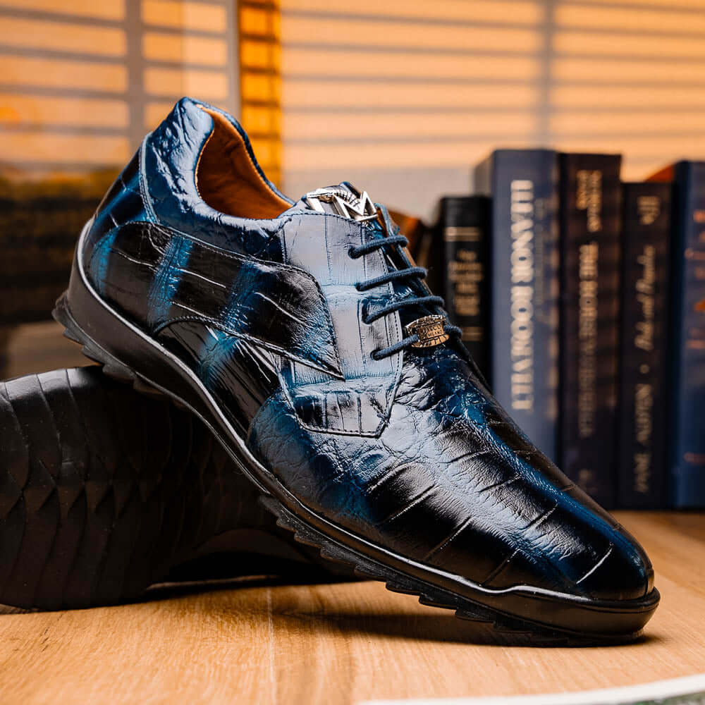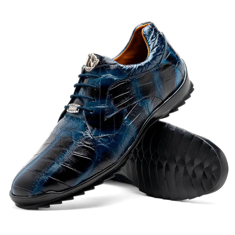 - Marco Di Milano Vulcan Men's Shoes Navy Exotic Alligator Derby Sneakers (MDM1195)
