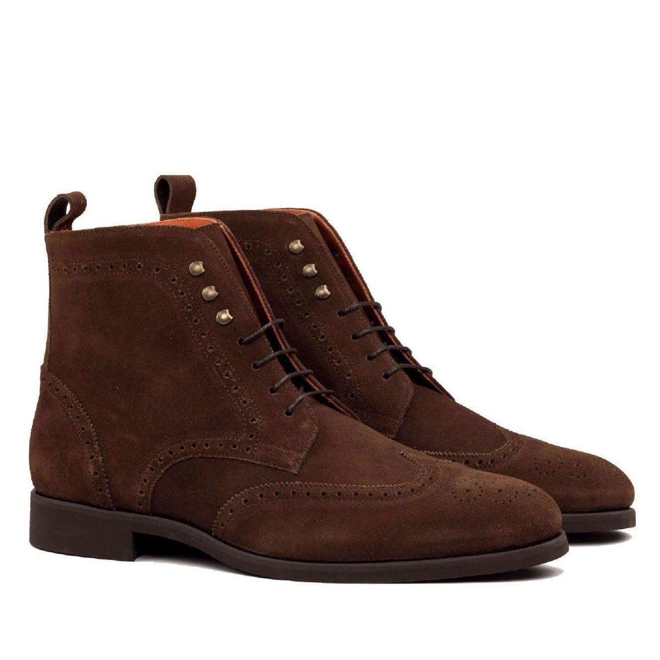 - Ambrogio 2454 Bespoke Custom Men's Shoes Brown Suede Leather Military Brogue Boots (AMB1529)