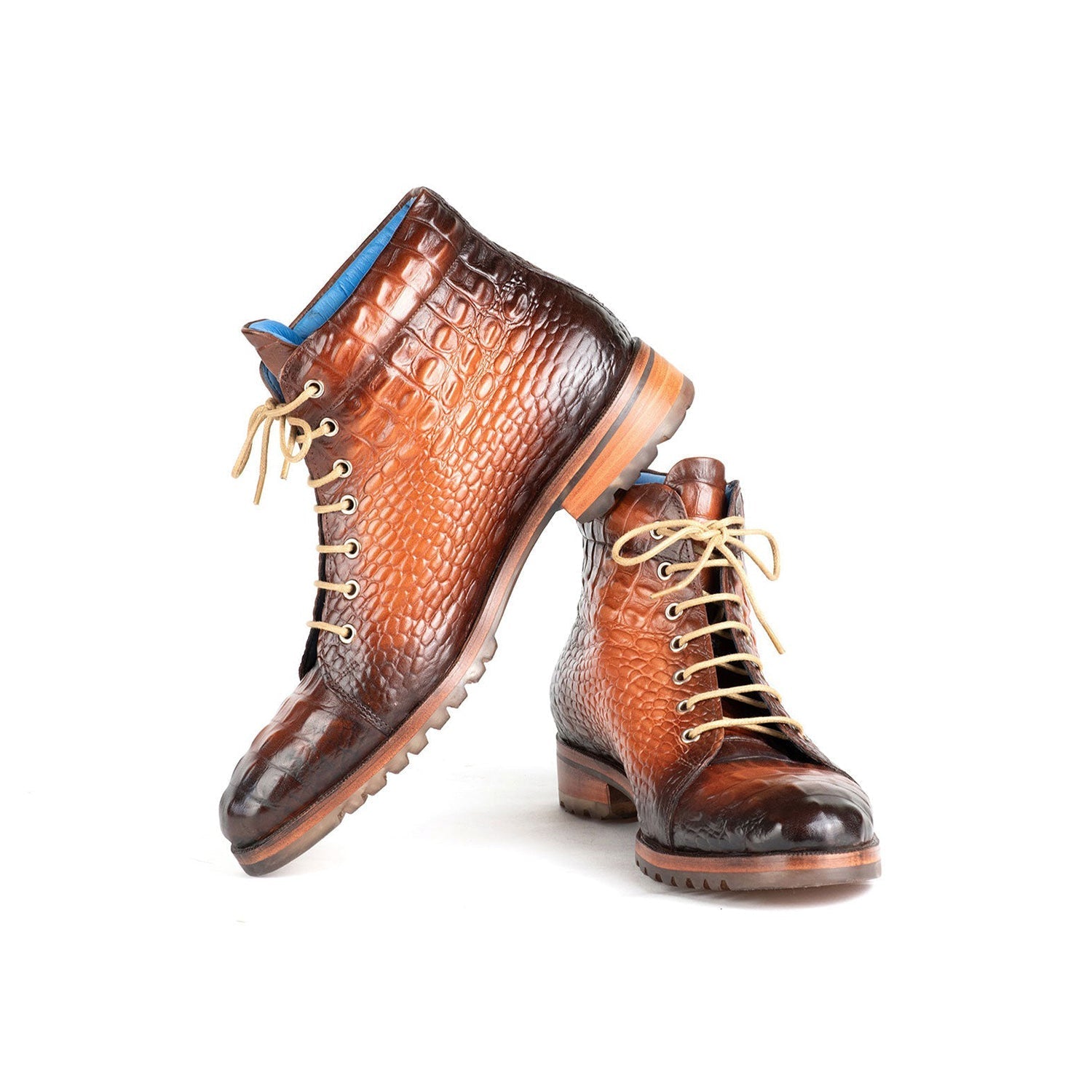 - Paul Parkman 12811 Men's Shoes Crocodile Print Calf-Skin Leather Boots (PM6422)